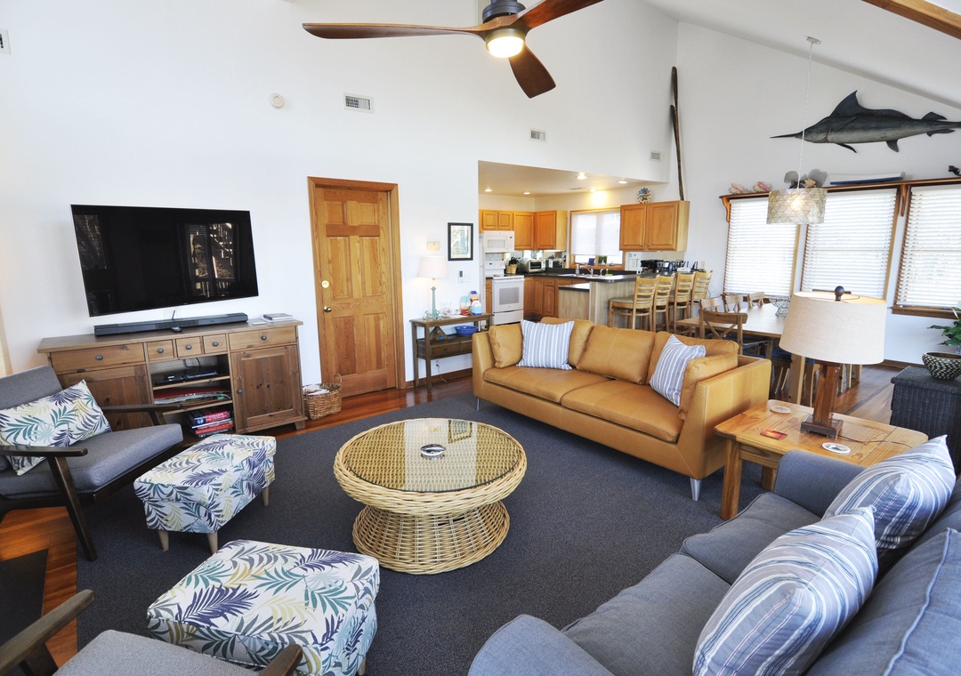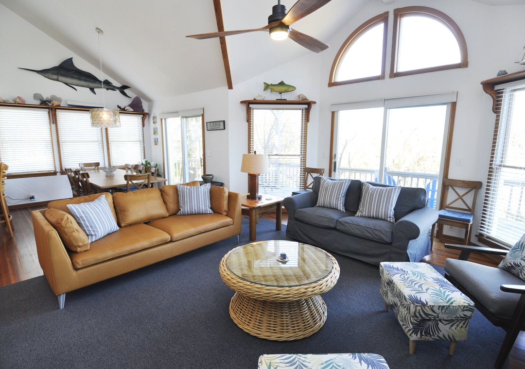 Admirals Retreat features an open floor plan and various outdoor living spaces sure to provide a relaxing stay on Ocracoke Island. The comfort and elegant furnishings are sure to complement a vacation with family or friends.