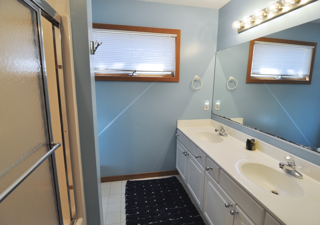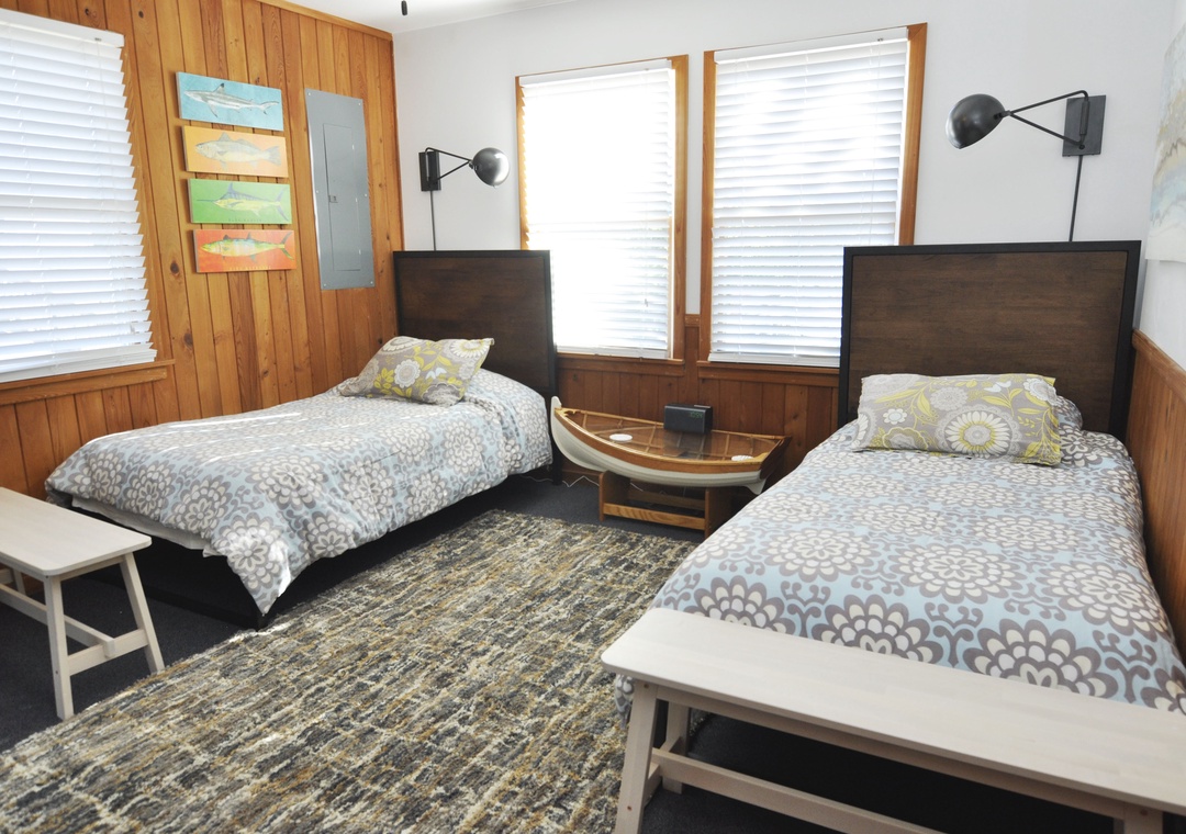 Four bedrooms, 2 Baths: 2 with Queen, 2 with two Twins. One bath with a large whirlpool tub.