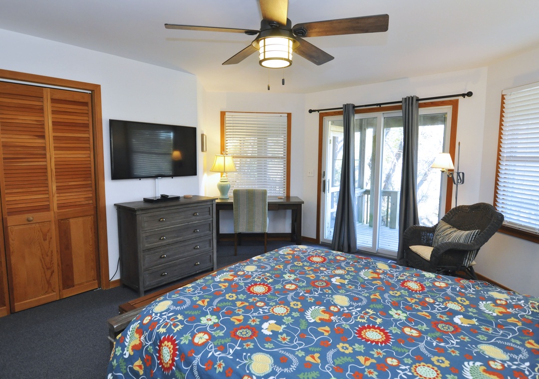 Our 37 th year. An ‘upside down’ house which always adds light to the second floor living areas. Terrific location! Bedrooms are all a very nice size. My DIL said it was her favorite ever. (5 times here with visits also to family rentals). My caveat: no second floor screened porch. The screened areas are on the lower floor accessible only by going through a bedroom or walking down to the first floor and going outside to access it. Might sound like a small thing but as it is MY favorite feature, I really missed a screened in porch on the second floor. I never went to the lower one even once. Also… why there is a king size bed platform with a queen mattress on it befuddles me. Still, it’s hard to find such a four bedroom in Ocracoke. Overall it’s still 5 stars .- Reviewed On: 7/8/2023
