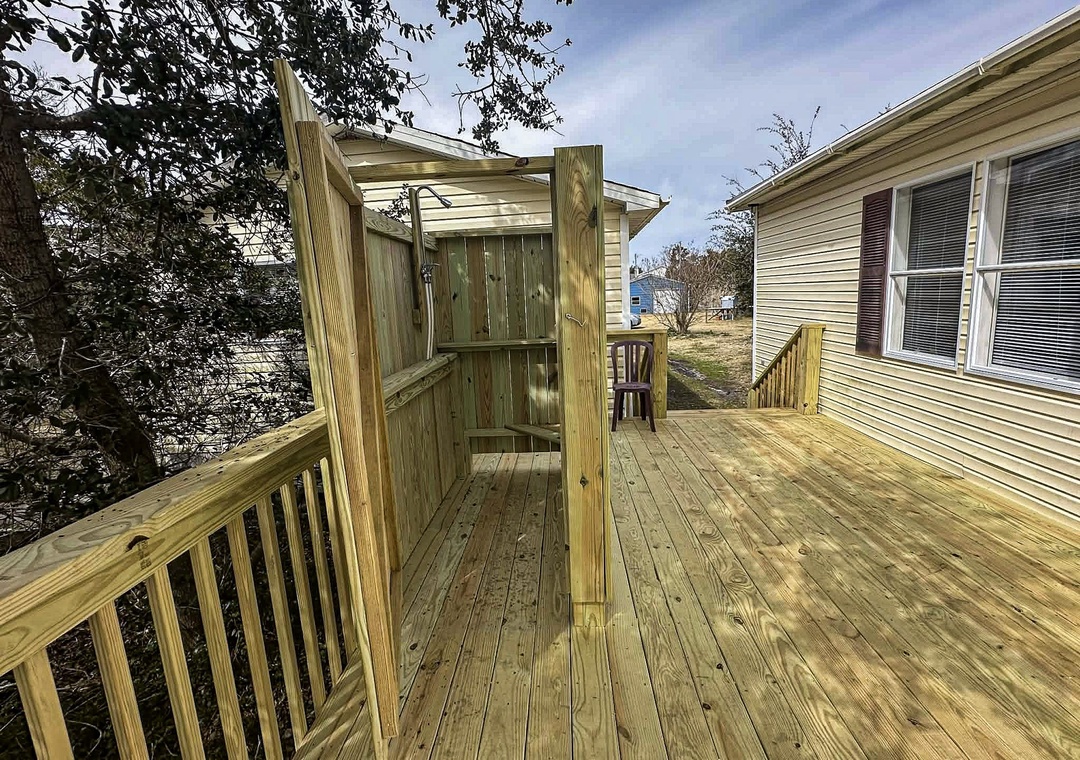 This family and pet-friendly vacation home offer a partially fenced deck for your convenience.