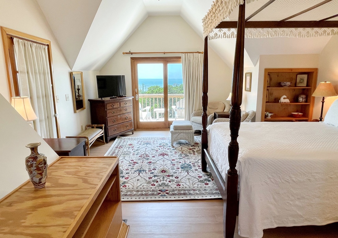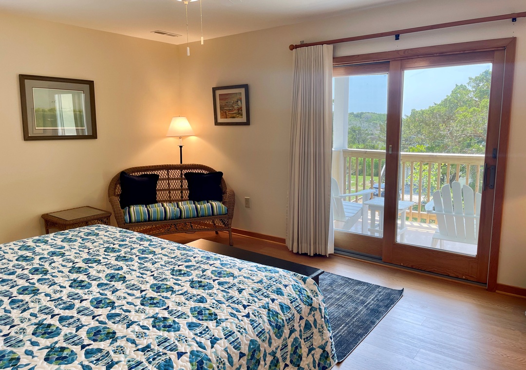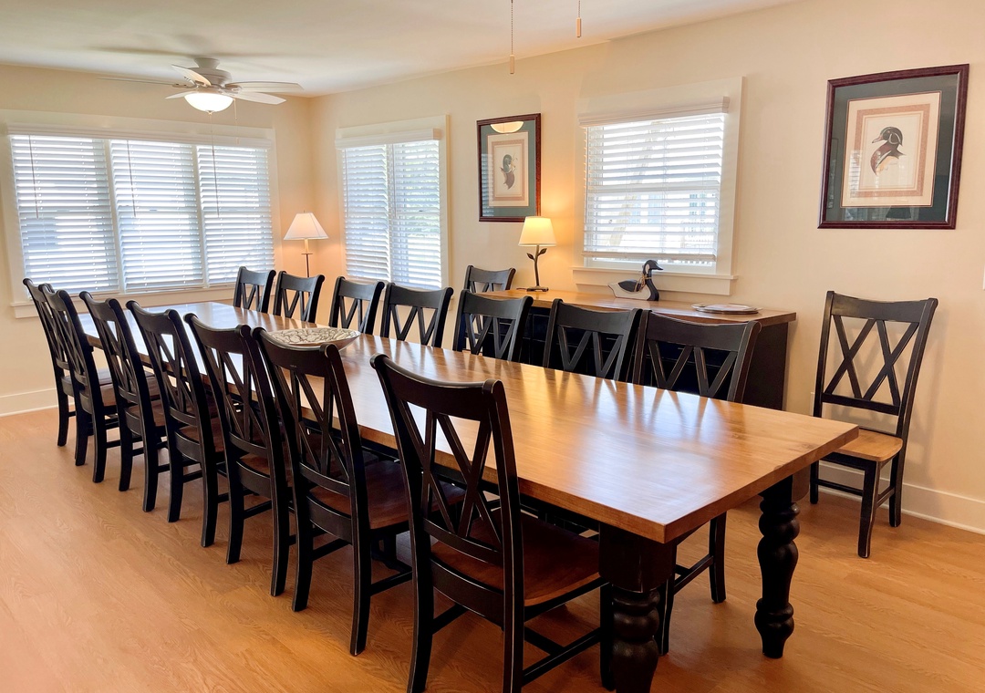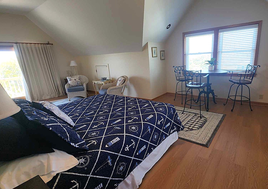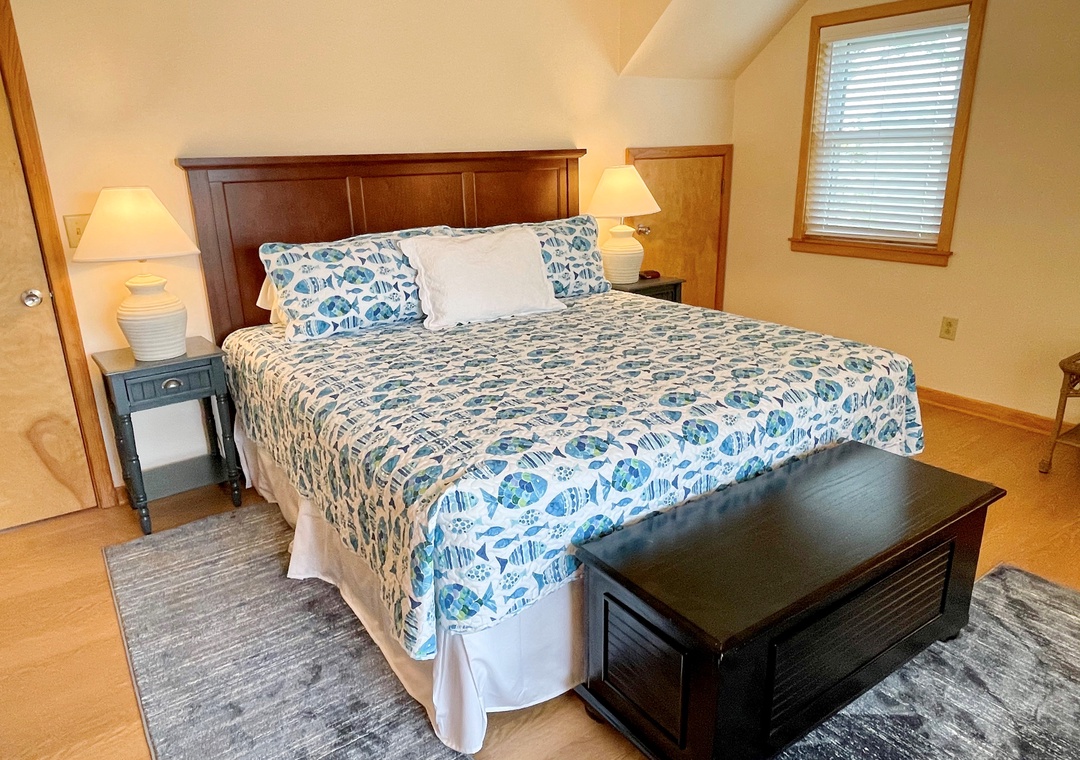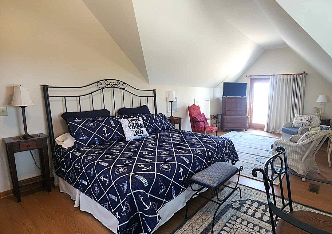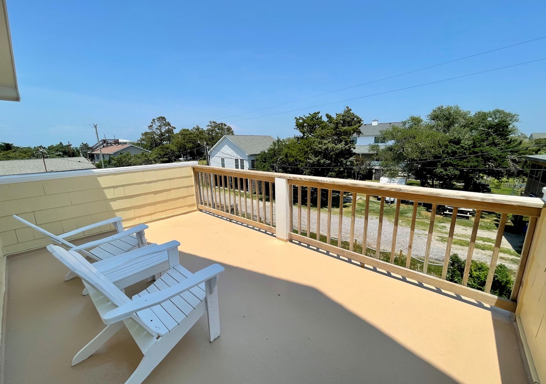 All bedrooms offer an adjoining deck. The decks off the second and third-floor front bedrooms provide a selection of views, including the Pamlico Sound at Teach’s Hole and the treetops of nearby Springer’s Point Refuge. Relax or dine on the spacious first-floor screened porch.
