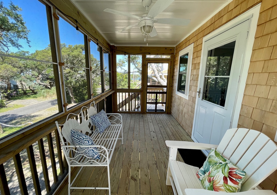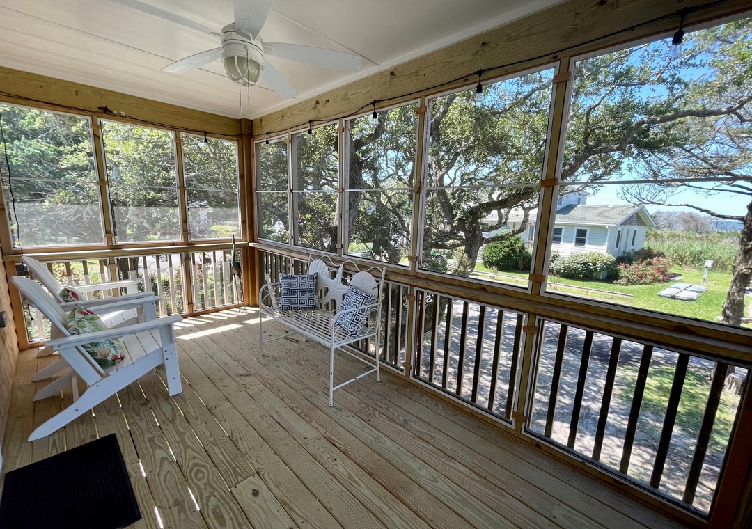 Thank you for your review. We're glad you enjoyed the screened porch, the red doors, and the water view. We hope to welcome you back to the island soon!Ocracoke Island Realty staff