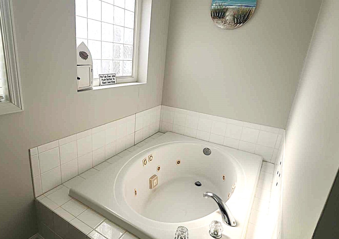 This two-story Villa features a sizeable second-floor Primary Bedroom with Queen Bed, smart tv, and private deck. The Primary Bathroom features both a whirlpool tub and a separate shower.
