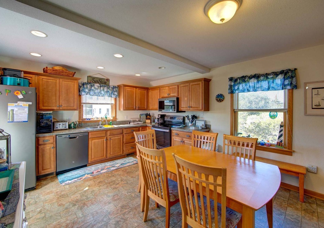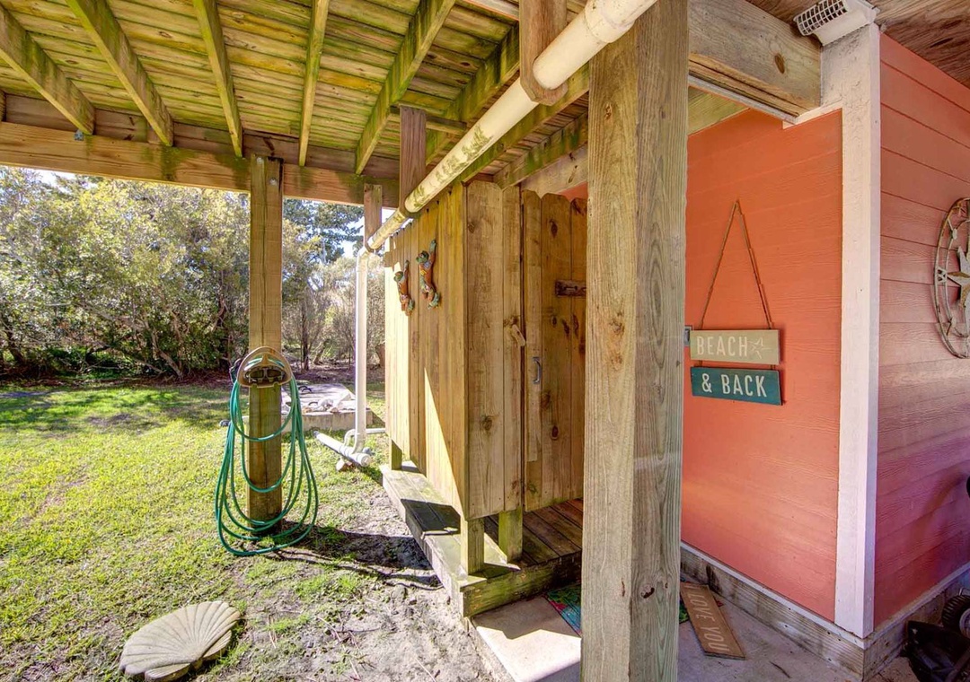The home features a well-maintained, fully equipped kitchen, ready for preparing your favorite meals. After a day of exploring the island, rinse off in the convenient outdoor shower tucked beneath the house.