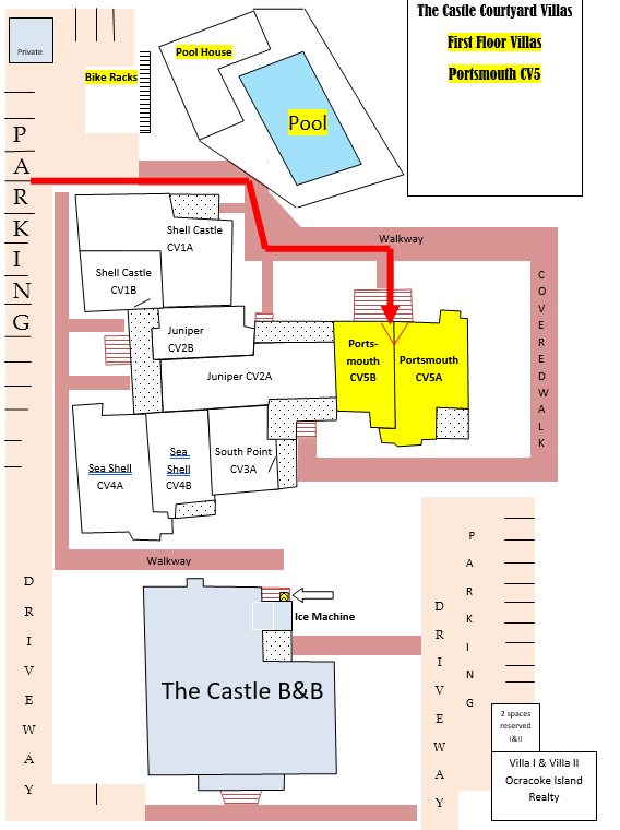 Amenities shared exclusively by guests of The Courtyard Villas and The Castle Bed and Breakfast include an outdoor pool. The pool is open mid April through October. Additional shared amenities include a pool house with a sauna. Outdoor shower.
