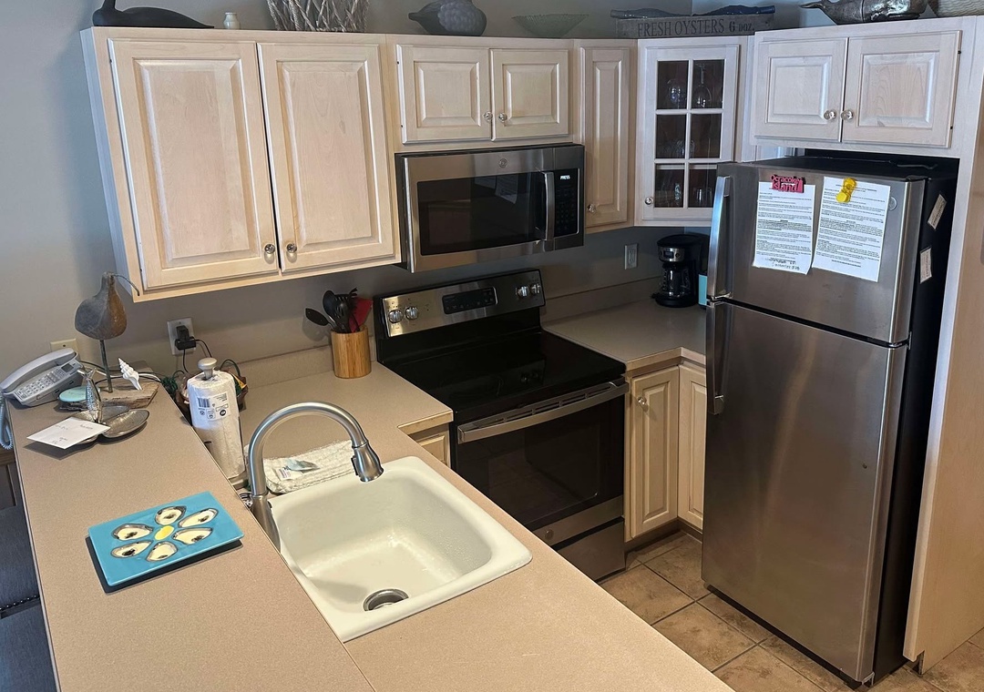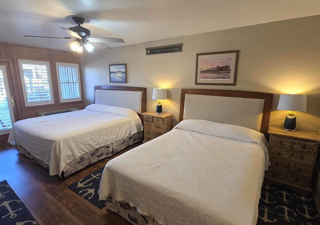 This first floor two bedroom, two bath villa offers a view of Silver Lake from the screened porch, a large living area with TV and single sleeping sofa, a full kitchen with bar and table seating, washer/dryer, and wireless internet access.