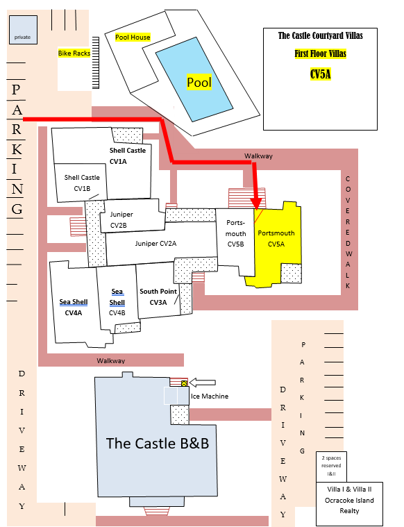 Amenities shared by guests of The Courtyard Villas and The Castle Bed and Breakfast guests include an outdoor pool, pool house with sauna. Outdoor shower, and wireless internet access in the Villa. The Castle Pool Season is mid April through October.