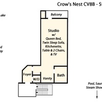 Washer/dryer located in the shared entry foyer and is shared with Crow's Nest Villa A.