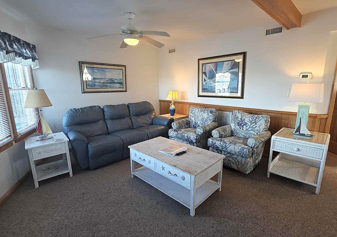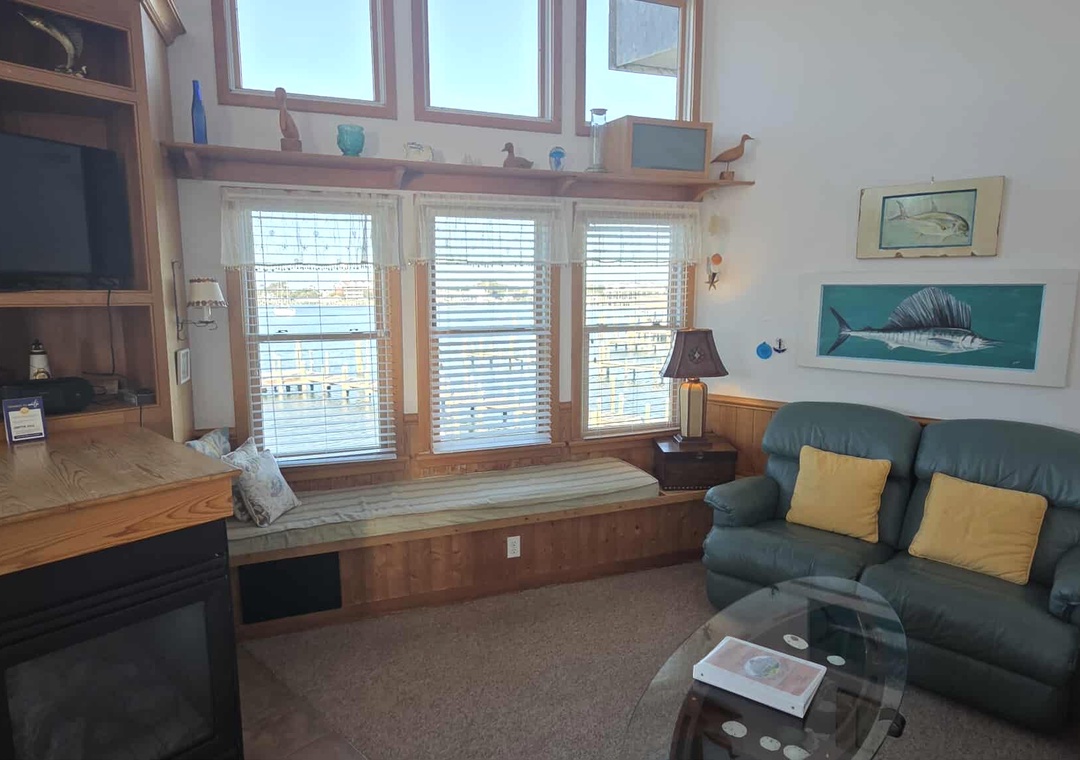 This waterfront two bedroom plus a loft, three full bath Villa is our most often requested! Sitting right on Silver Lake with breathtaking harbor views from the deck, screened porch, and interior. The Net House offers two spacious living and dining areas on separate levels an upper-level full kitchen with dishwasher and ice machine, lower level kitchenette, washer/dryer, wireless internet access, and four TVs. Please note the fireplace is not available for guest use.
