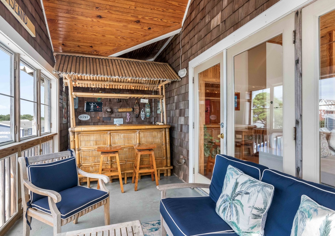 -Screened porch with tiki bar and water views
