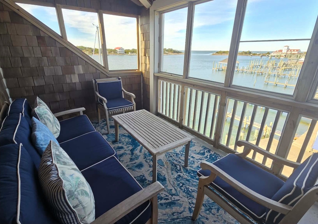 Thank you for your review. Glad the place was comfortable and that you enjoyed the harbor views. We appreciate the suggestion about window screens. We hope to welcome you back to Ocracoke soon!Ocracoke Island Realty staff