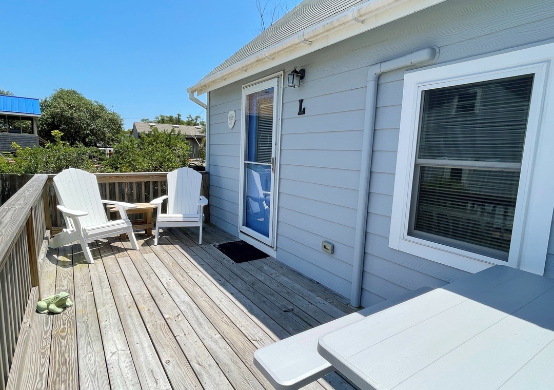 The L was a great place to stay for a couple. We stayed two weeks. It is efficient and comfortable. We used both porches but especially liked the screened-in porch. It has a lot of windows which makes it feel bigger. The galley kitchen had all that one needed for cooking meals. It is tucked away with a good bit of privacy but easy to get to everything. I did not give it 5 stars because of minor ant/bug issue - that could of been because of all the rain we had the first week. I would definitely stay here again the next time I come to Ocracoke. We really enjoyed the space.