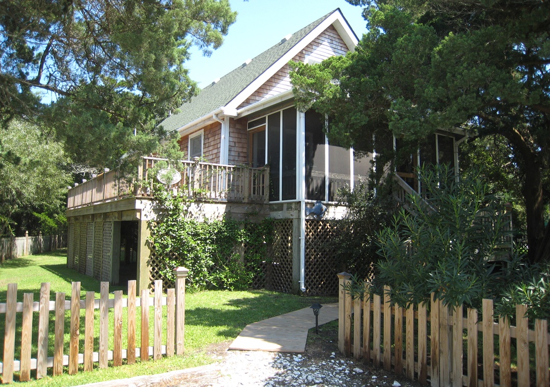 This cheerful cottage is conveniently located on Ocracoke's Back Road. An easy walk to the Coffee Shop, Silver Lake Harbor, and the many island shops and galleries. This popular cottage is a favorite destination for returning families behind a picket fence and tucked among the cedar trees. The colorful decor and simplicity of design provide a soothing and relaxing setting for your island vacation. Relax on the screened porch or large deck. You're on vacation!