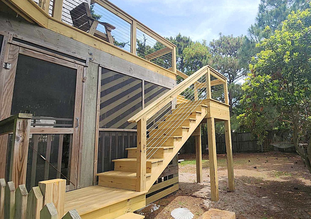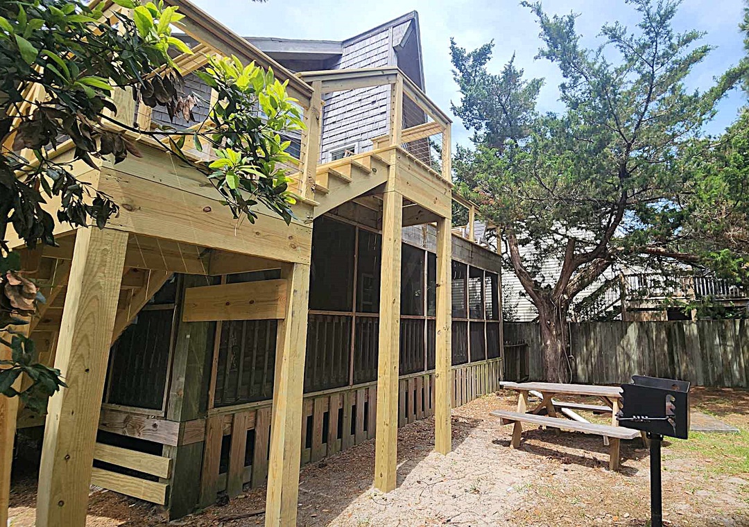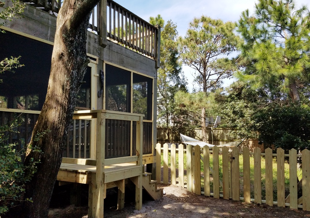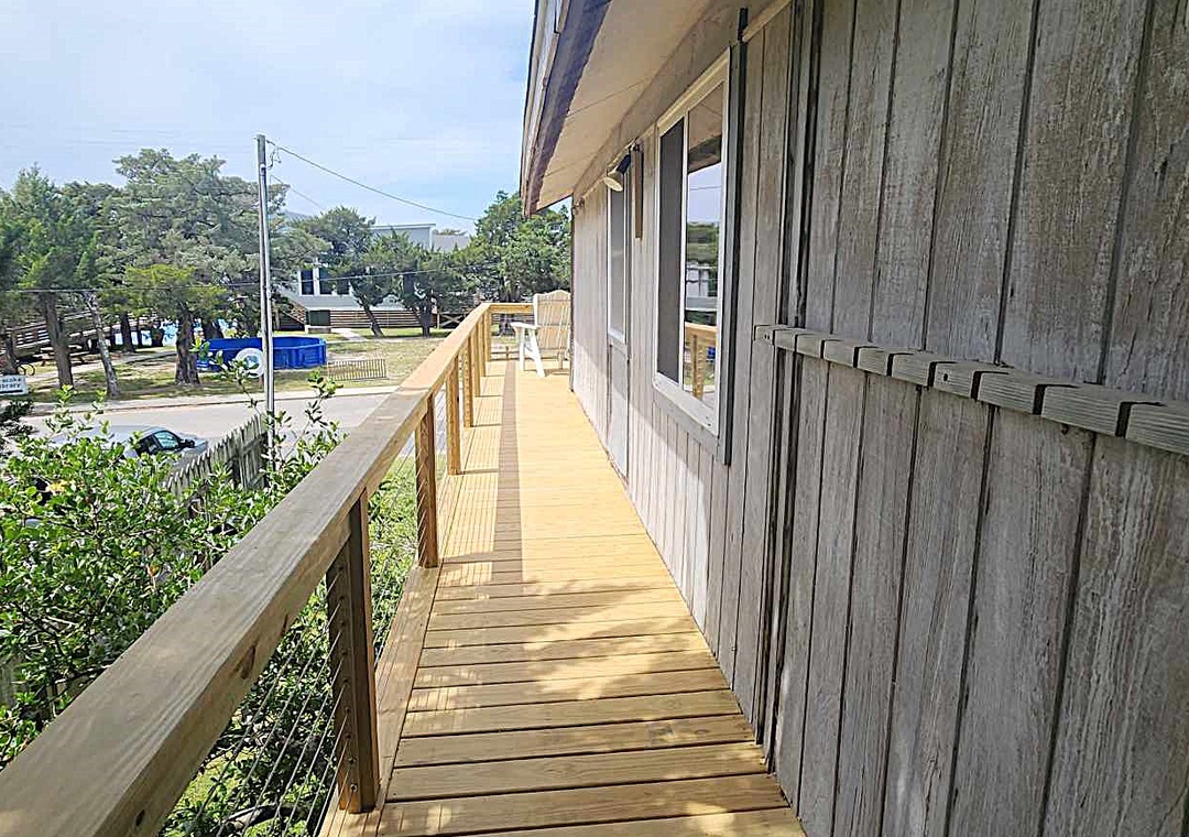 Thank you for taking the time to provide your comments. The owners have built a wrap around deck with access to the enclosed back yard, and screened in porch! We do hope you will give the home another try! thank you!Ocracoke Island Realty staff