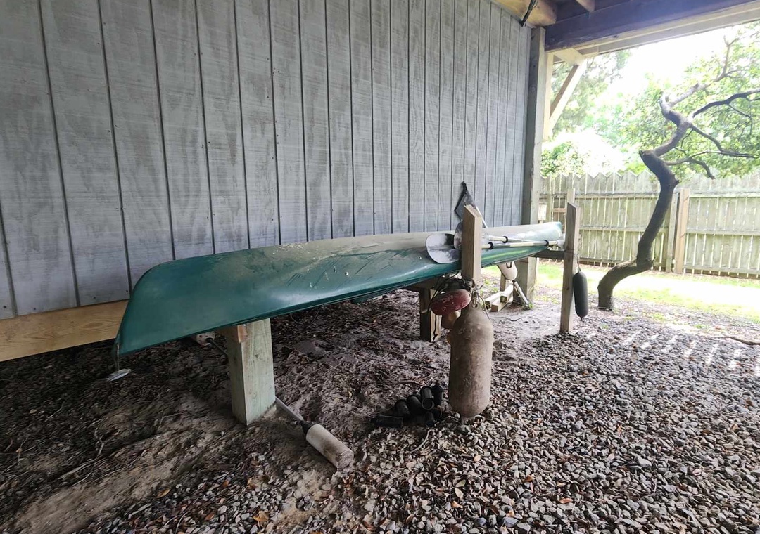 The exterior offers a wrap-around deck with access to the screened in porch and enclosed back yard, two picnic tables, a hammock, a hot/cold outdoor shower, park-style charcoal grill, and a fish cleaning bench (No Water). Covered parking.