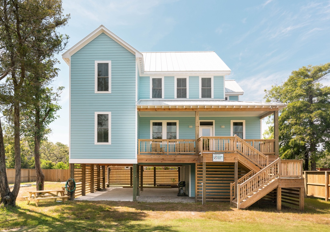 New for 2025! Your perfect getaway awaits in this newly constructed upscale home named in honor of island native Capt. Walter C. O'Neal, Sr. This four-bedroom home boasts updated finishes and furnishings that are modern, crisp and classy. Centrally located on Back Road, you are a short walk from Ocracoke Coffee Company in the morning or Flying Melon or Zillies in the evening. Four spacious bedrooms each with their own full bath will allow plenty of space. 3 kings, 2 twins.