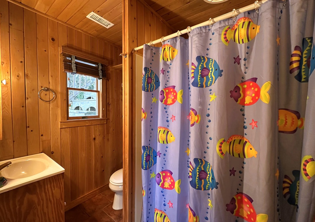 First Floor: Den with futon and Smart TV. Two Queen Bedrooms and Full Bath with walk in shower.