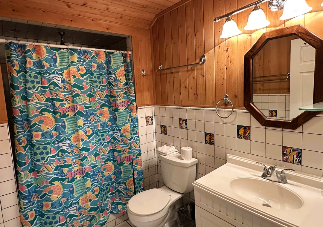 2 Bedrooms, 2 Baths: First Floor with two queens and full bath with shower only. Second floor full bath.