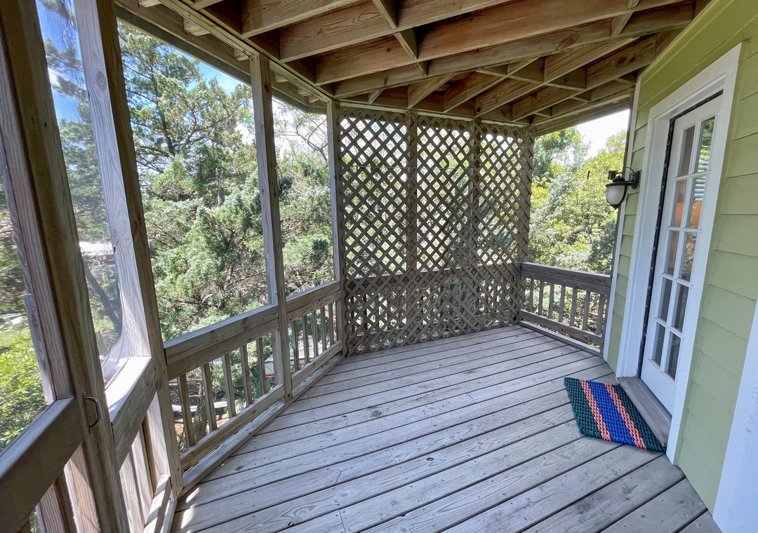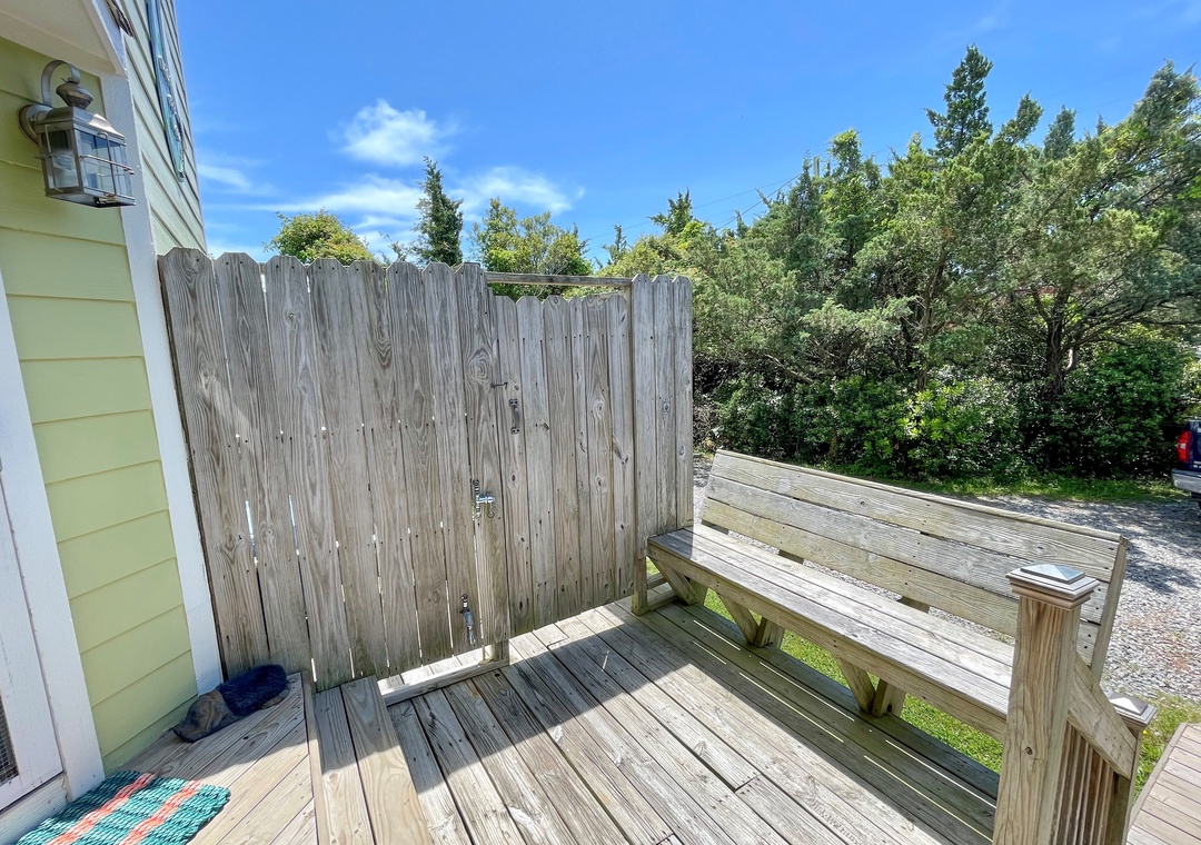 The exterior offers two screened porches, two open porches, a large hot/cold outdoor shower with convenient foot wash, park-style charcoal grill, and a deck swing.