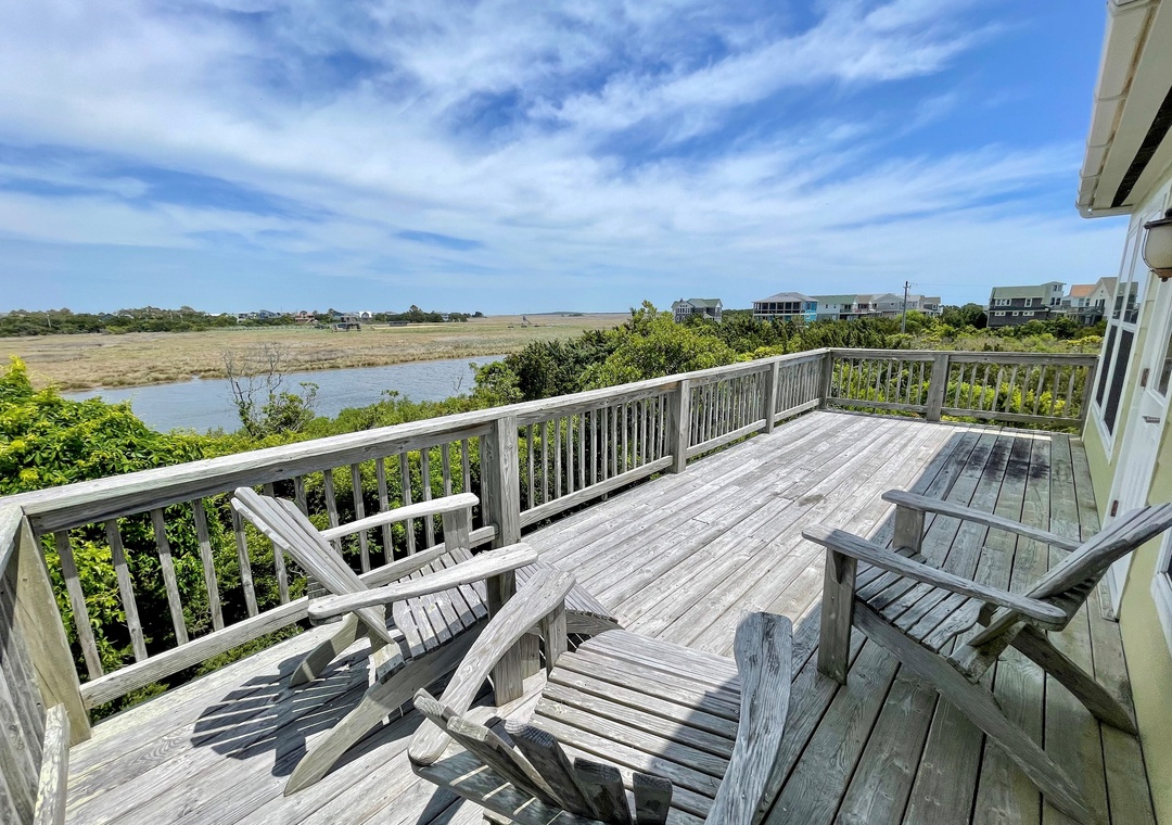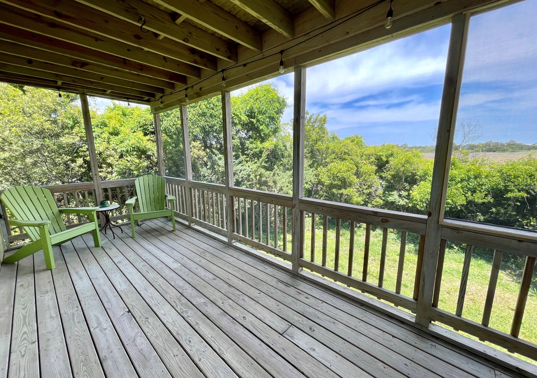Enjoy this bright and airy, pet-friendly Ocracoke vacation home with plentiful windows, providing expansive views of the nearby pond and salt marsh. Relax on the large screened porch, adjacent to the open living room & kitchen area. View abundant birdlife from the large upper deck which is adjoining to the 2nd-floor bedrooms.