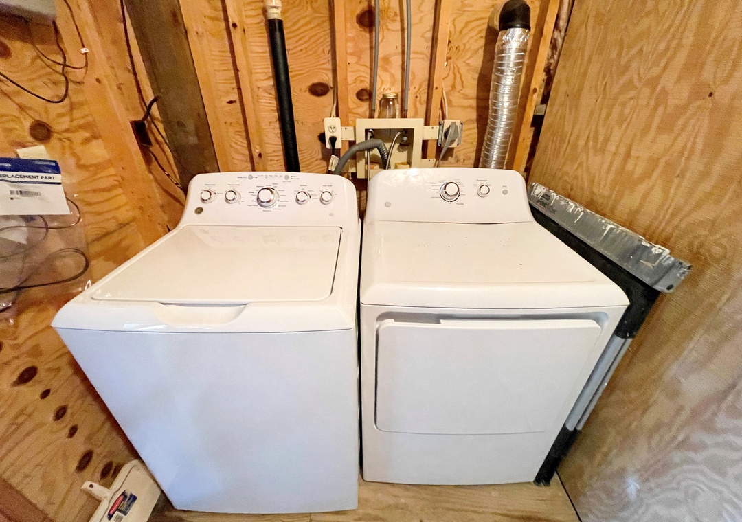 Ground Level: The washer and dryer is in the ground level laundry shed.