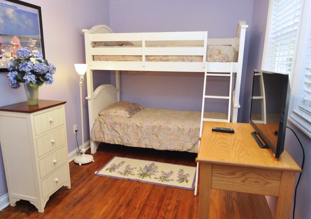 3 Bedrooms, 2 Baths: 1 with King, 1 with two twins, 1 Bunk Bed with twins.