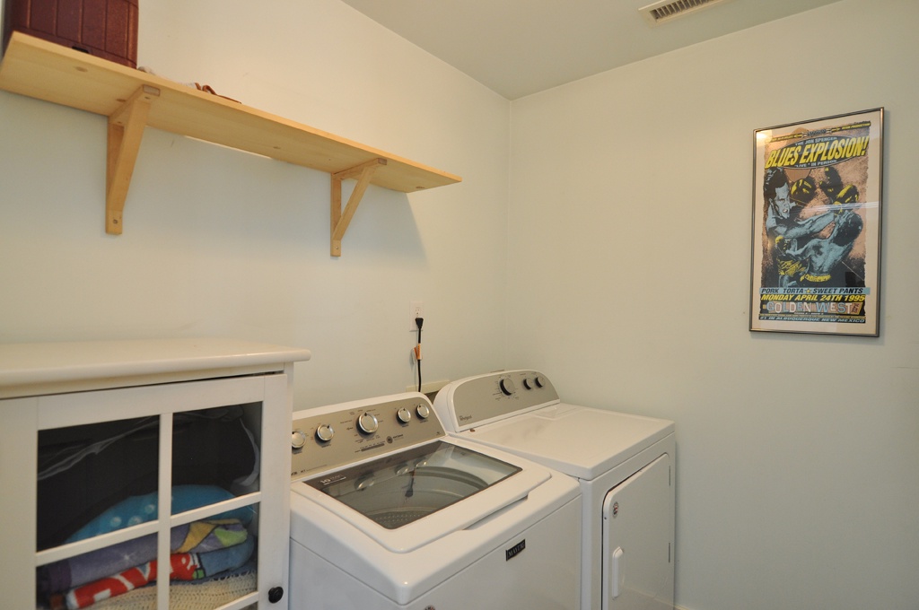 Second Floor: Primary Bedroom with California King, TV/DVD, and Primary Bath with soaking tub and separate shower stall. Bedroom with Queen and Bedroom with Double and shared bath with tub/shower. Laundry Room.