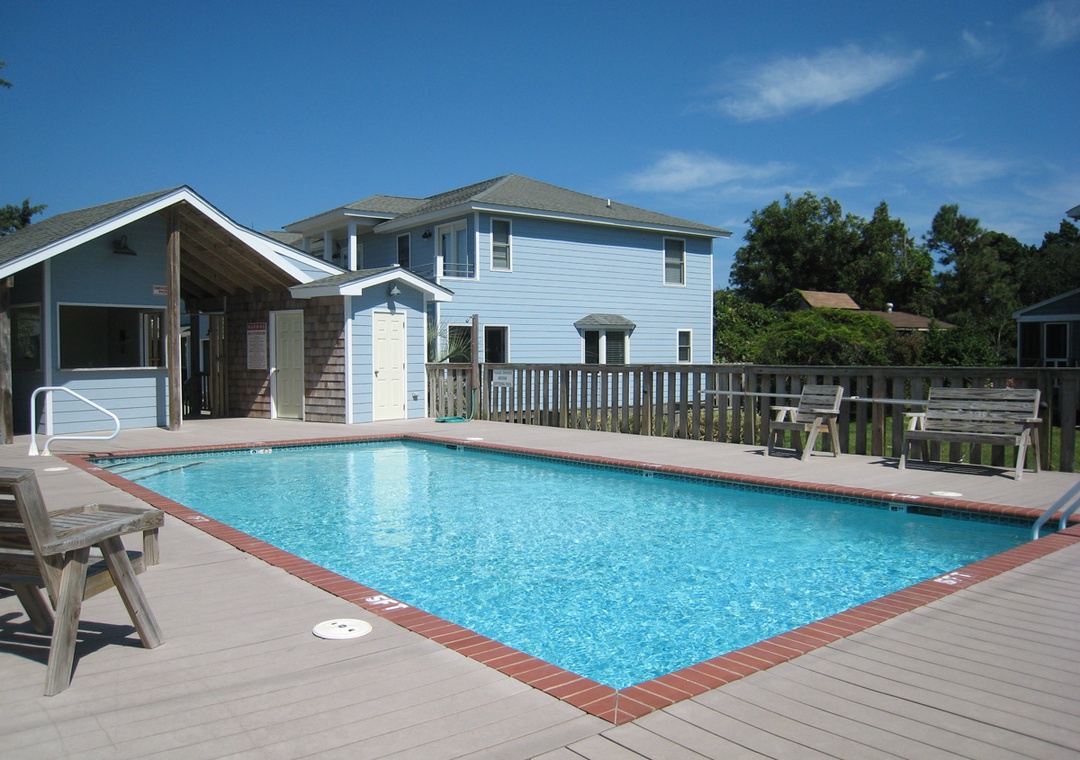 The exterior offers a first and second floor covered deck. The Boyette pool is a popular feature exclusively for guests of the Boyette Condos. The non-heated Boyette Condo Pool is open April 13 through mid-October. Outdoor open COLD shower at poolside. Shared charcoal grills are available.