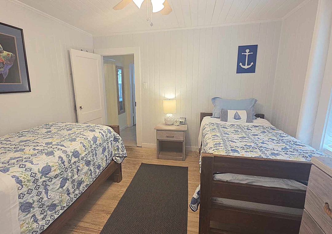 2 Bedrooms, 1 Bath: 1 with Queen, 1 with two Twins. Bath has tub/shower.