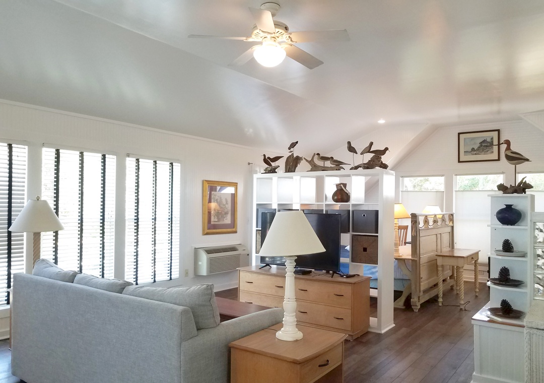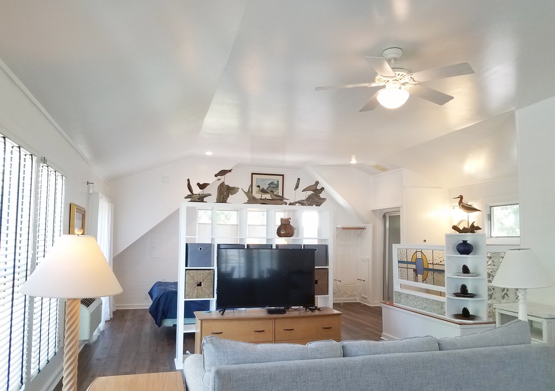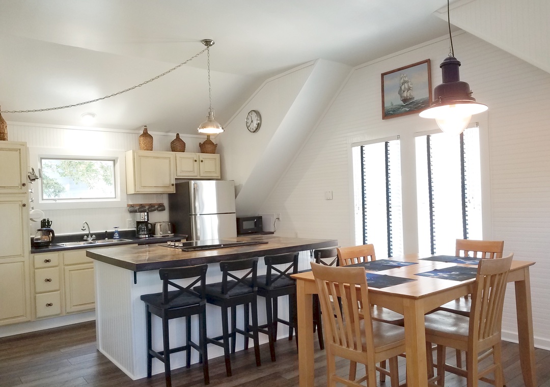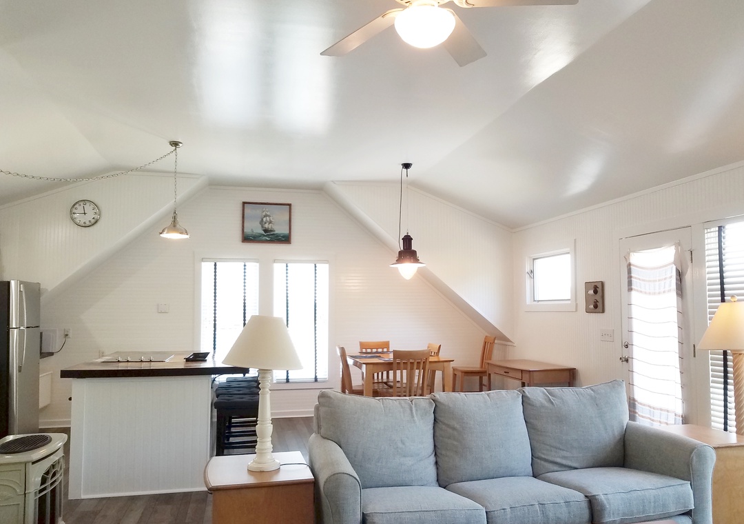 Moonraker's Attic is a studio getaway perfect for two! Relax in the soaking tub or wash away the stresses of the day in the enclosed steam shower. Enjoy this studio featuring plenty of windows to let the outdoors in.