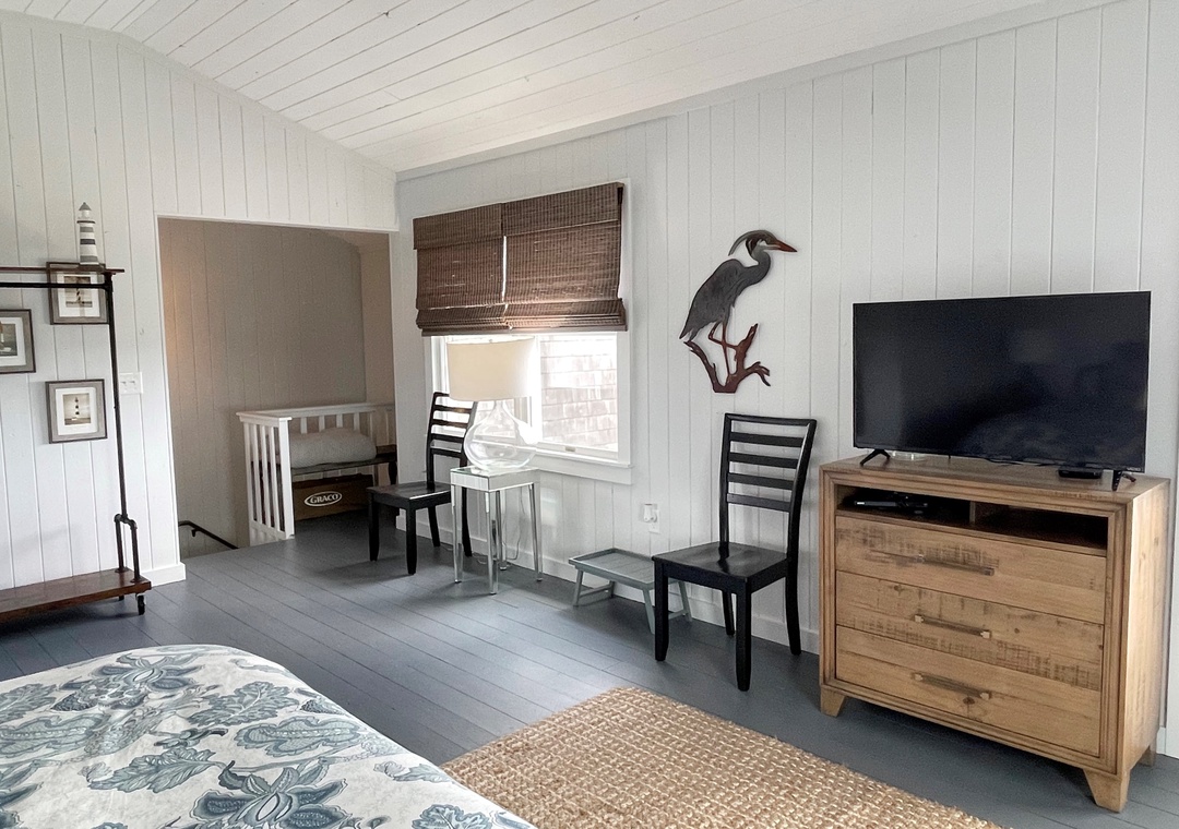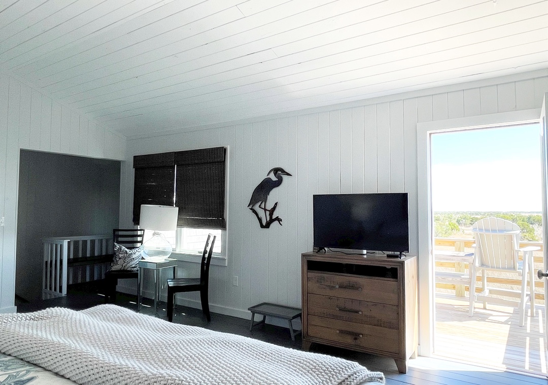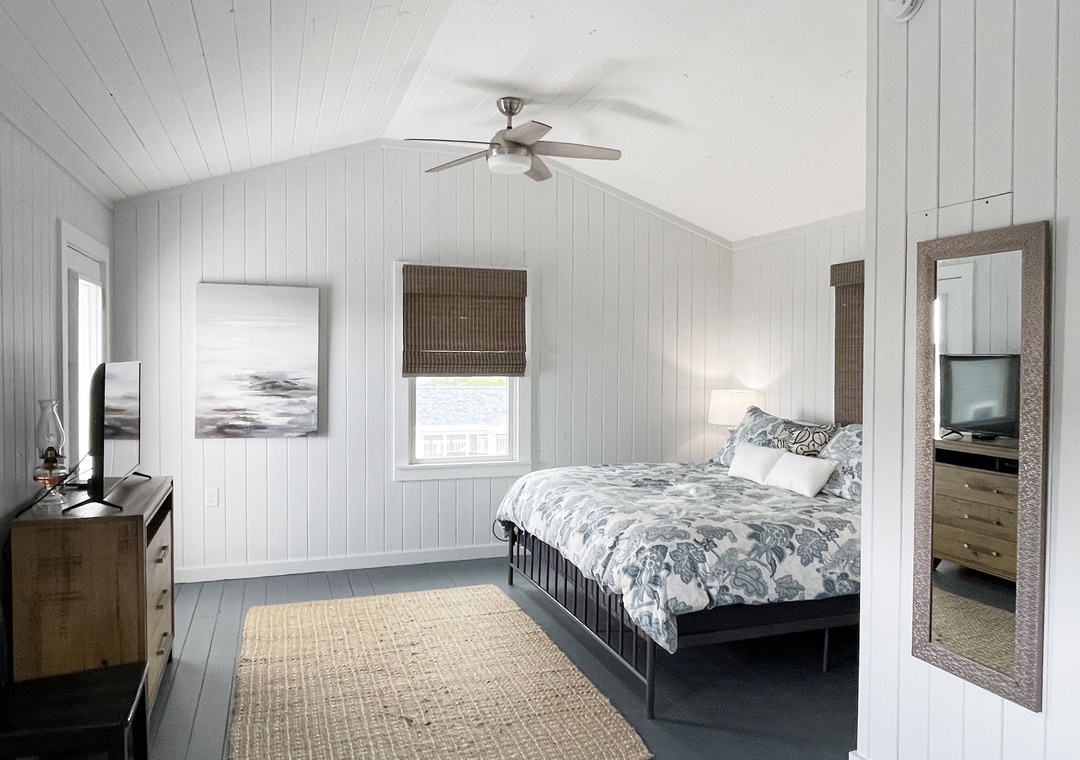 Second Floor: Bedroom with King Bed. Bathroom with tub/shower. Deck access.