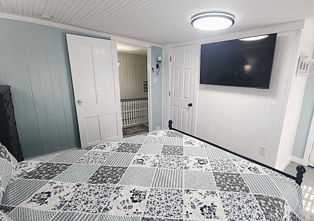 Second Floor: Queen bedroom. Full bath with shower only. King bedroom.