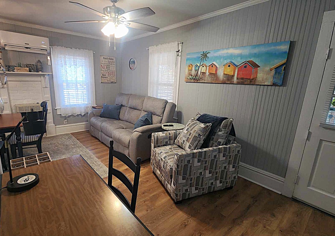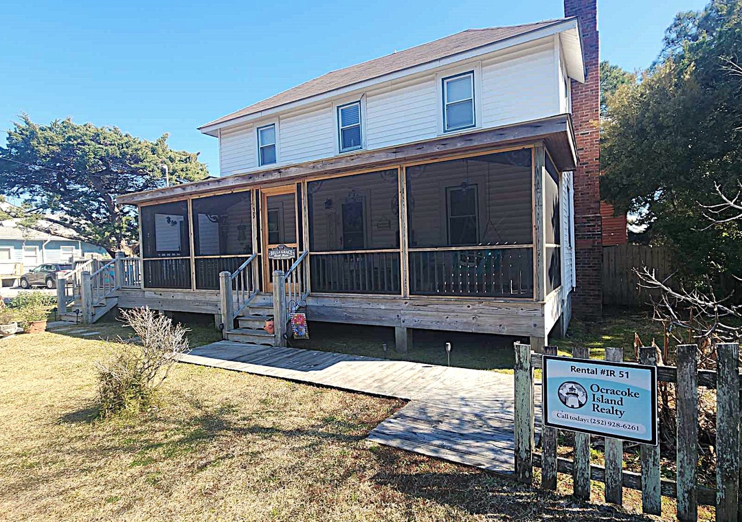 Your family and your four-legged friends are welcome at this cozy historic home. Recently remodeled and new to rent in 2025, you will find this house has lots of Ocracoke character! Relax on the screened porch or take your dog to play in the spacious and completely enclosed backyard. It is centrally located just off Irvin Garrish Highway, so easily walkable to shops and restaurants.