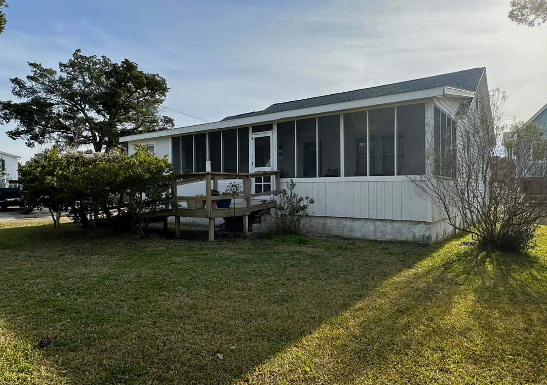 The exterior offers a spacious yard and a large screened porch.