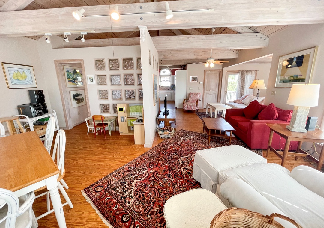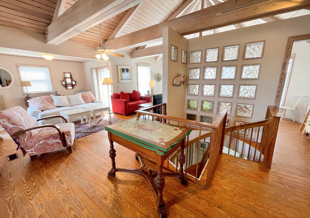 Welcome to Moondance, an inviting, reverse floorplan, Ocracoke Island vacation home, thoughtfully designed with the sun and moon in mind. Experience true relaxation in this unique and comfortable space. Moondance is an ecclectic mix of local artwork, handpainted one of a kind tables, antique rugs, and soothing colors, every corner invites you to unwind. Several decks and porches provide additional spaces to unwind and relax while enjoying breathtaking views of the marsh and distant ocean.