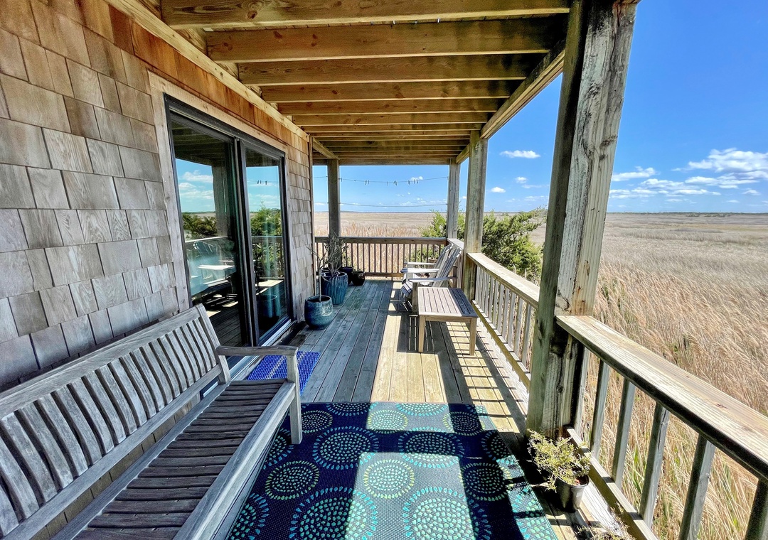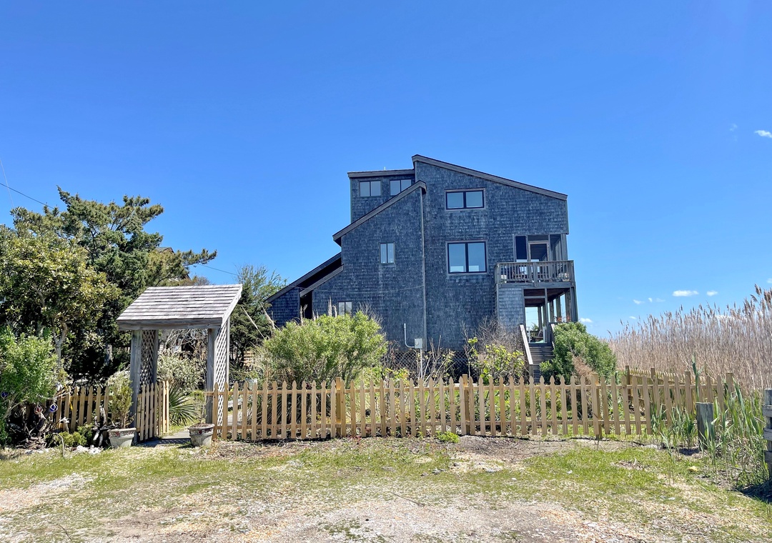 With some of the most spectacular views on the Island, Skynear offers a sweeping private panorama of the natural salt marsh and the Pamlico Sound, along with the distant sparkling waters of the Atlantic Ocean. This beautifully designed home is located on the corner edge of Jackson Dunes.