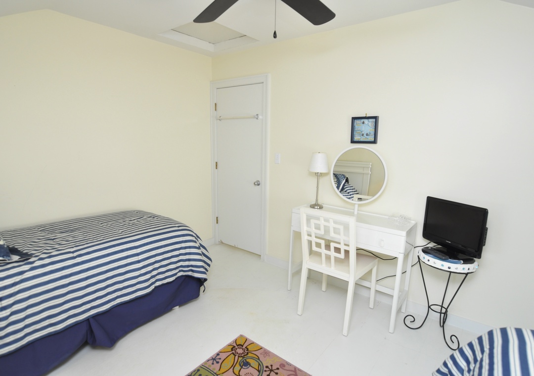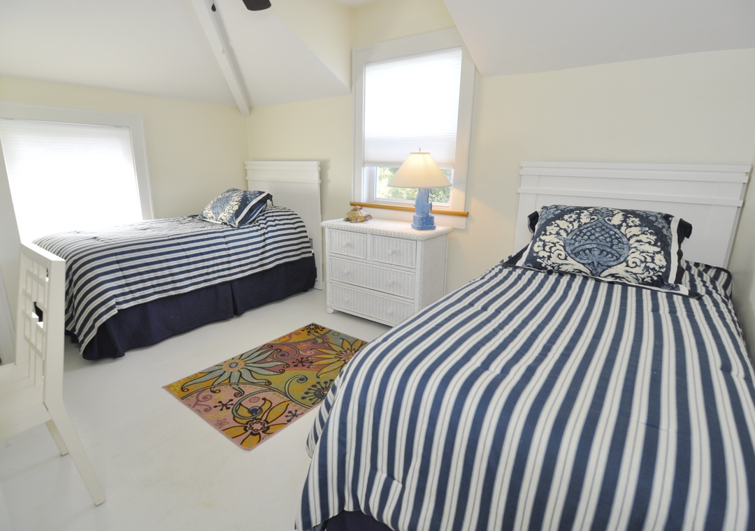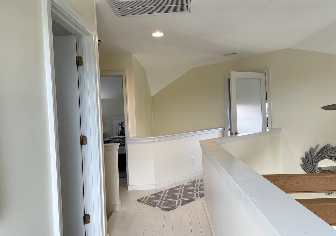 Second Floor: Three bedrooms. Bedroom with Queen. Bedroom with 2 Twin beds and Bedroom with Twin and Trundle. Hallway bath with shower stall.