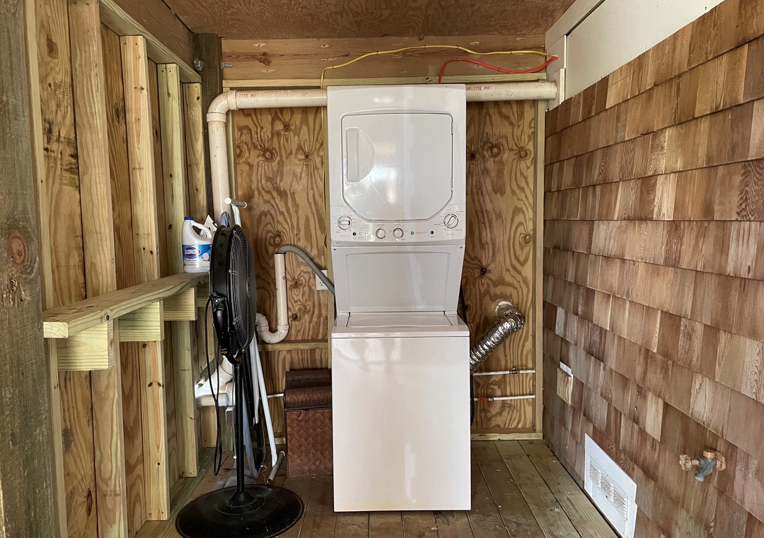 Ground Level: Laundry Shed with stackable Washer and Dryer.