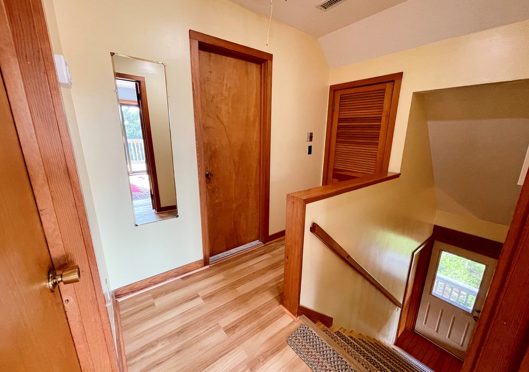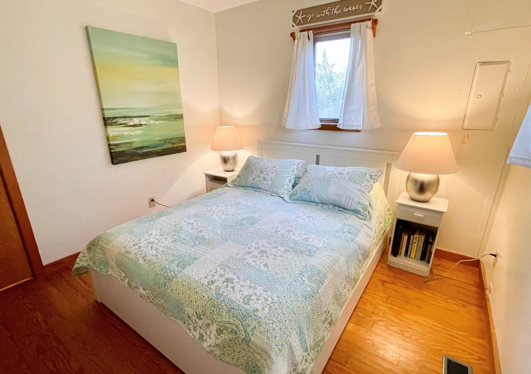 Second Floor: Two bedrooms, each with a Queen bed. Full bath with tub/shower.