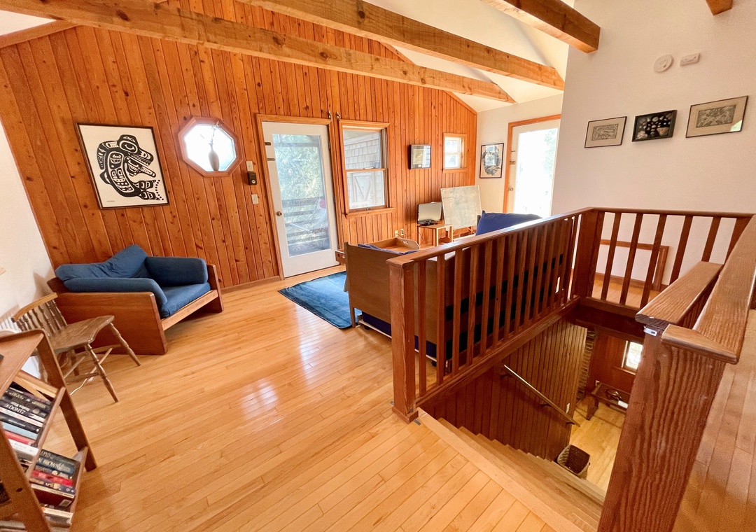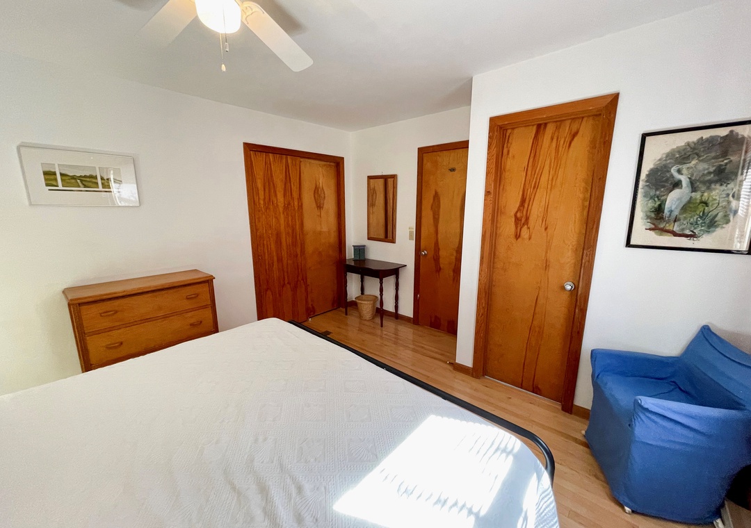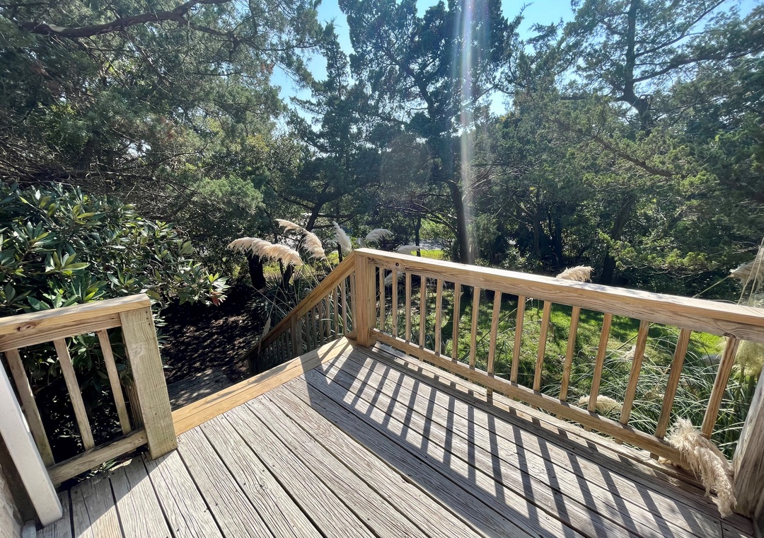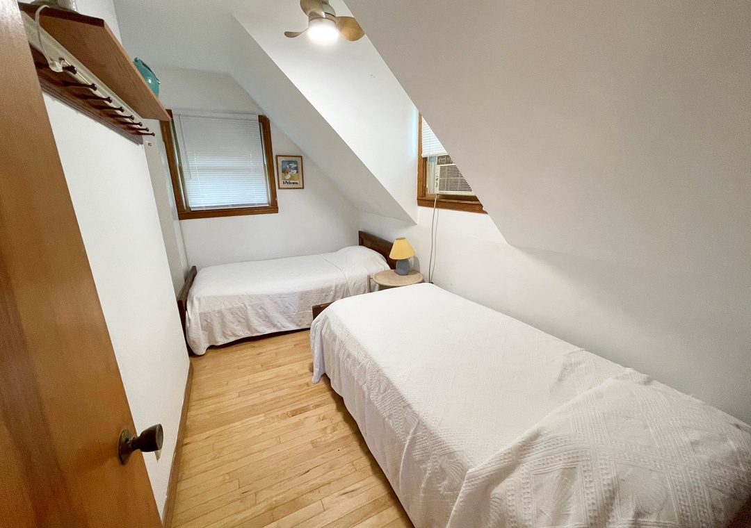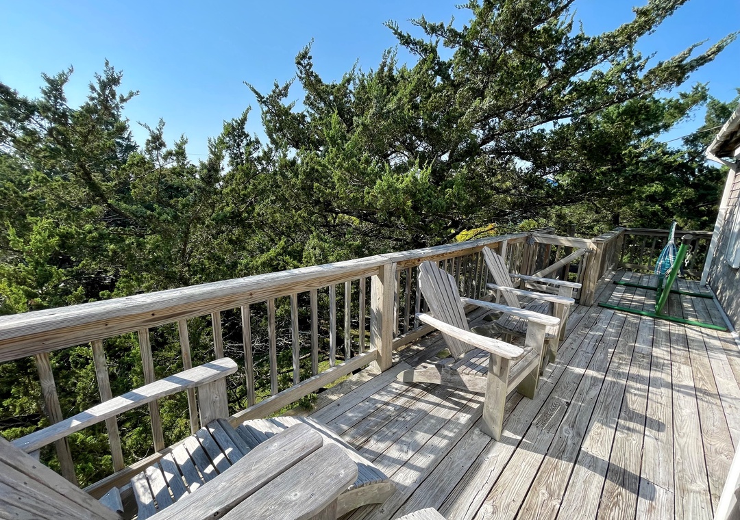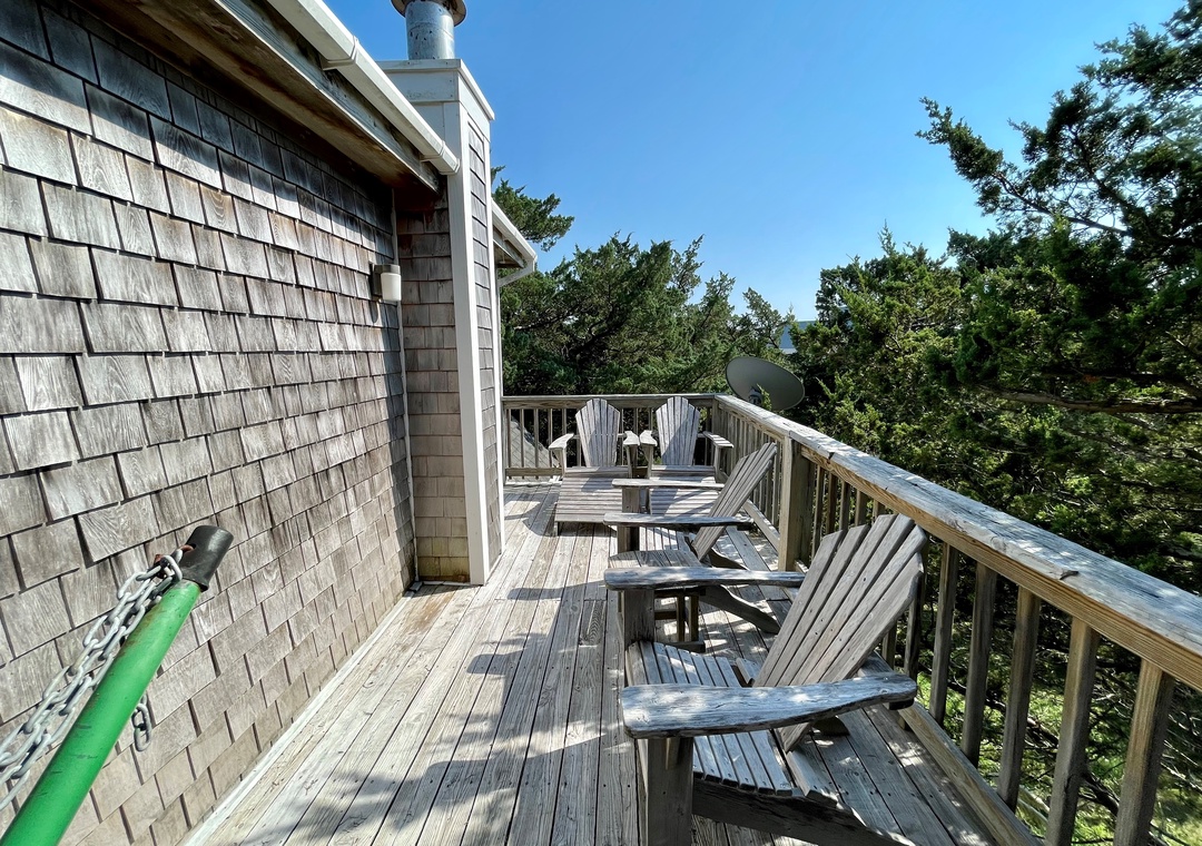 Second Floor: Bedroom with King. Bedroom with two twins. Shared bath with shower stall. Sitting Area. Screened porch. Deck.