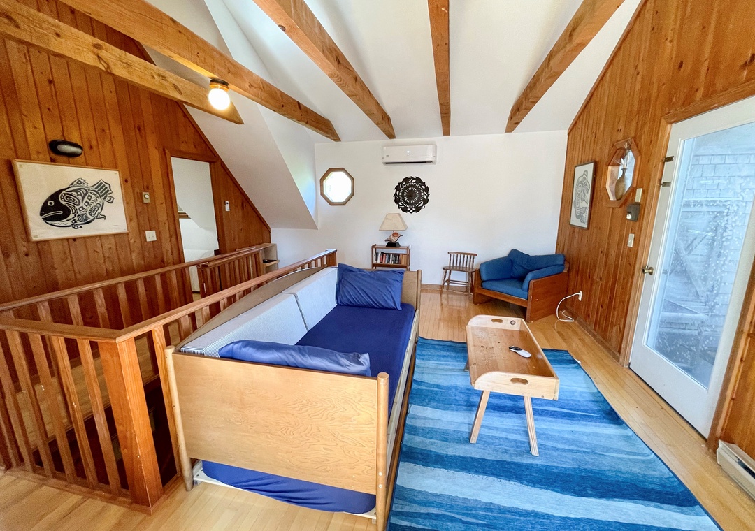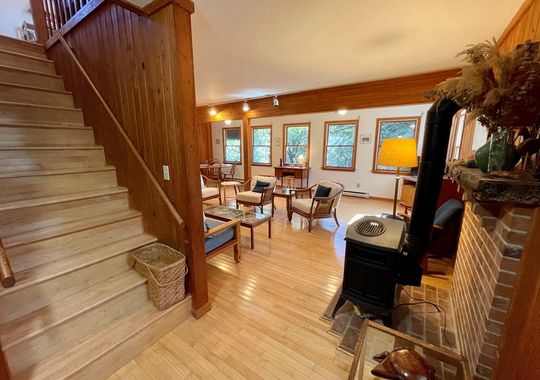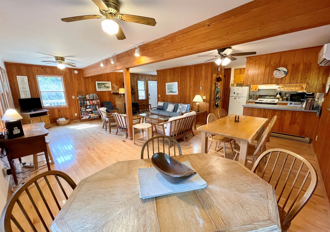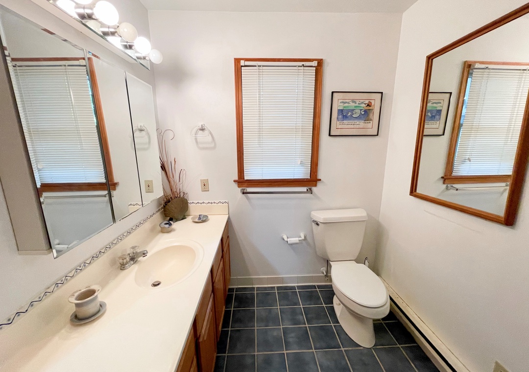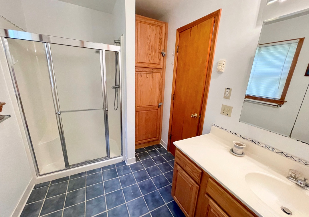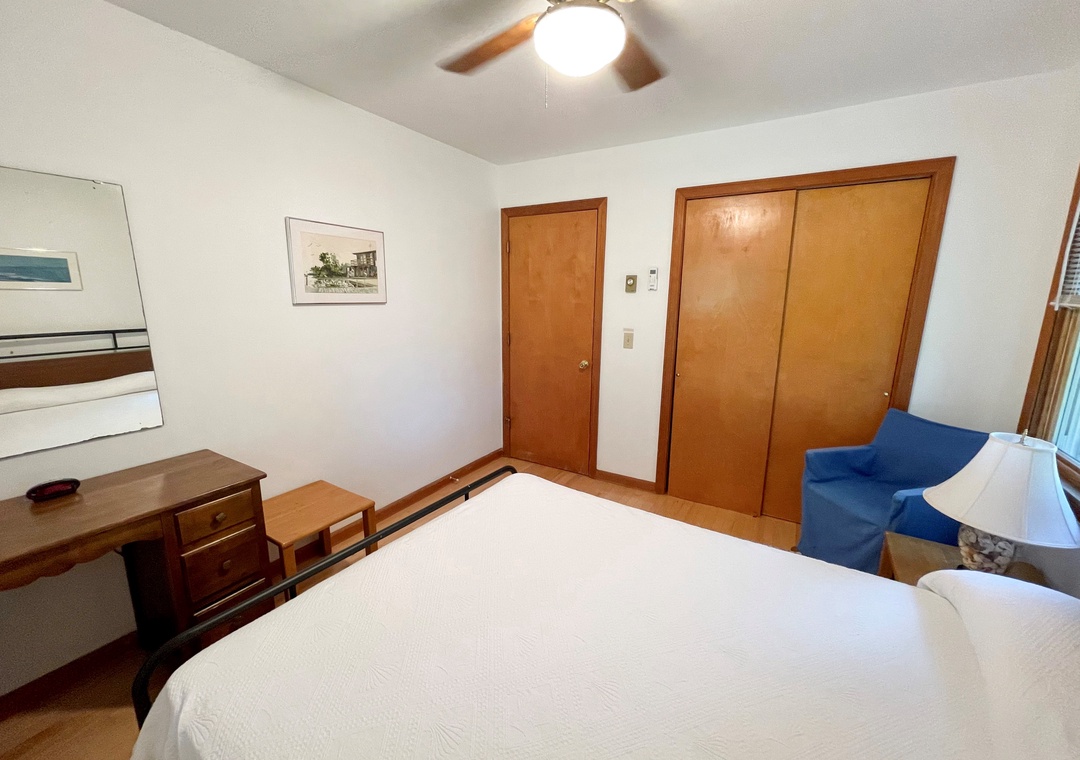 Second Floor: Bedroom with King. Bedroom with two twins. Shared bath with shower stall. Sitting Area. Screened porch. Deck.