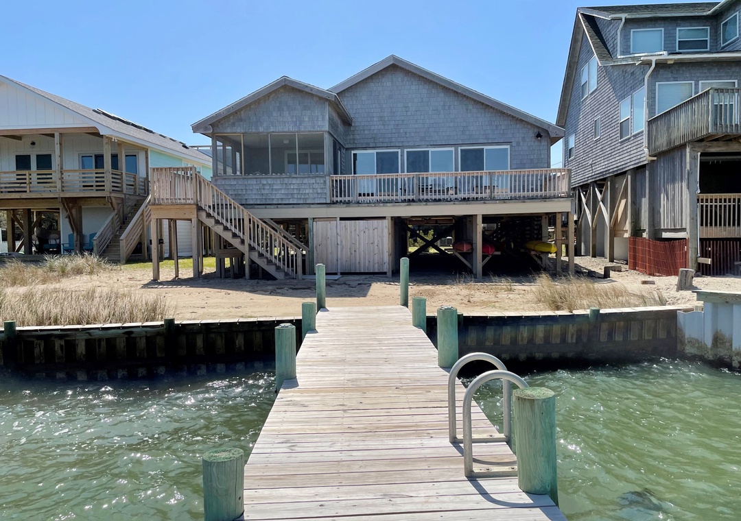 Enjoy fabulous Pamlico Sound views from this waterfront home with a spacious interior. Bright and airy, the interior will enhance your island stay. There is easy walking distance to Silver Lake Harbor, village activities, shops, galleries, and restaurants.
