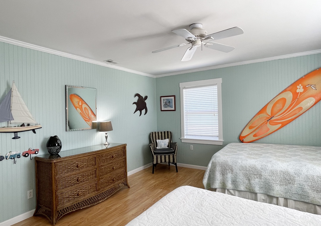 2 Bedrooms, 2 Baths: 1 with Queen, 1 with Queen and one Twin.