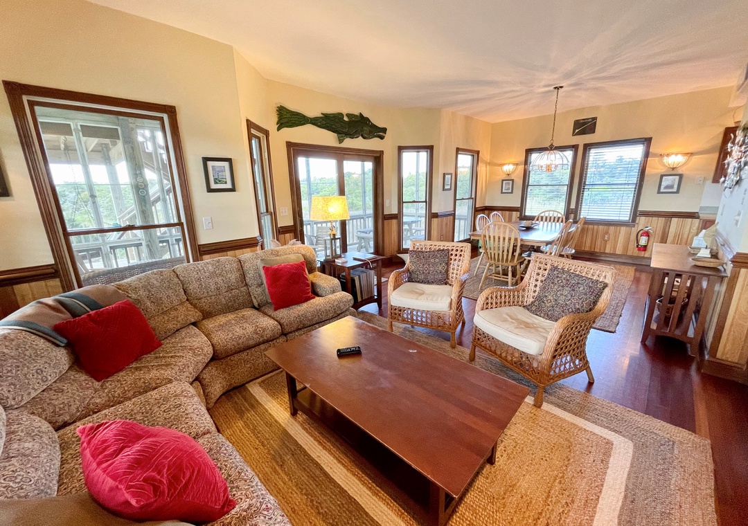 The house was very clean, which we appreciated. We weren’t able to run the fan in the master bedroom because it made noise and moved around a lot. The dust pan was warped which made it worthless. That said, the decks and porches were awesome. We enjoyed having nice places to sit and chat - especially the screened porch. The privacy afforded by trees and the creek was nice too.- Reviewed On: 5/21/2023
