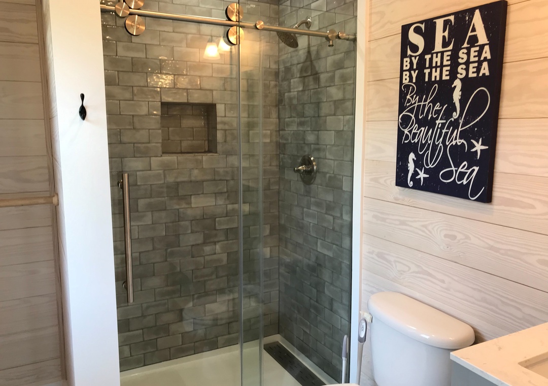 2 Bedrooms, 2 Baths: Master Bedroom with a King bed and private bath with tiled shower. Bedroom with a Queen bed. Bath with tiled shower.