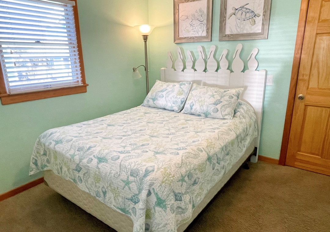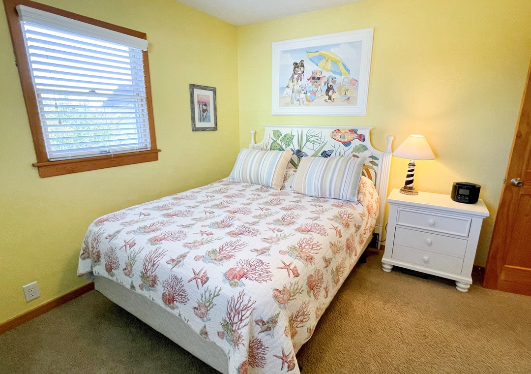 4 Bedrooms, 2 Baths: 1 with King, 3 bedrooms each with a Queen. A small alcove on the second floor offers a Pyramid Bunk Bed (Twin over Double), which offers flexible sleeping options (but does not allow occupancy over the 8 person limit). One bathroom has a whirlpool tub and a separate 4' walk-in tiled shower. The second offers a tub/shower.