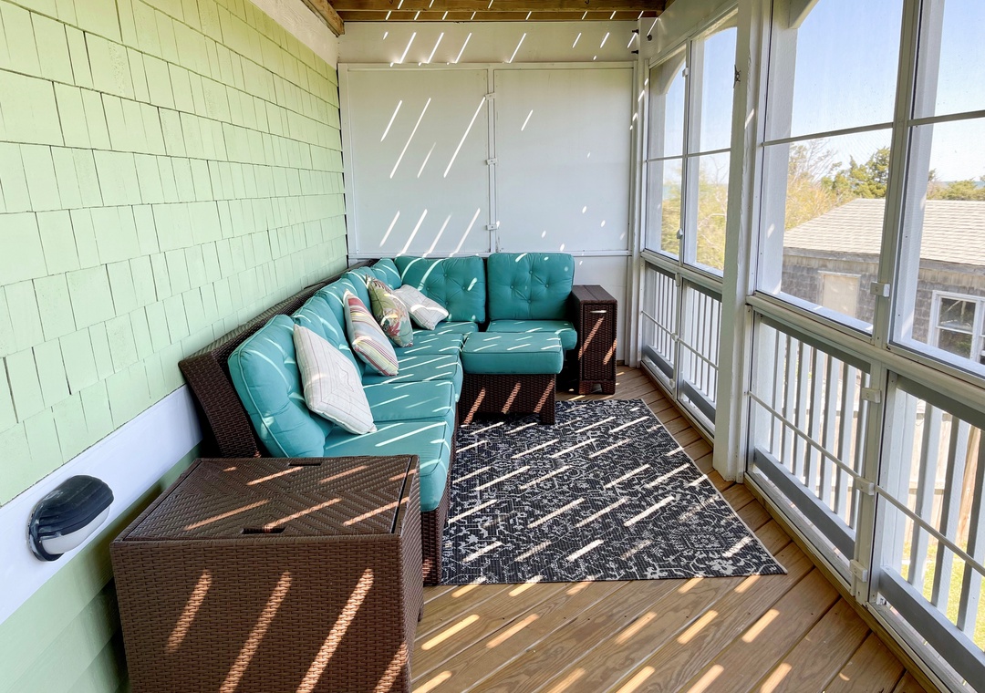 The exterior offers a waterfront deck with bench seating and screened porch each with a picnic table, plus a picnic table located by the grill. Park style charcoal grill, hot/cold outdoor shower, and fish cleaning bench. Two tandem kayaks. Life jackets are not provided, if you wish to rent them, please contact Ride The Wind Surf Shop. They will be happy to assist.