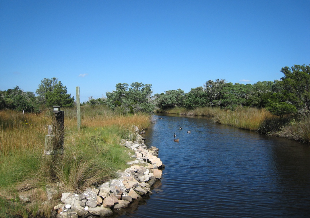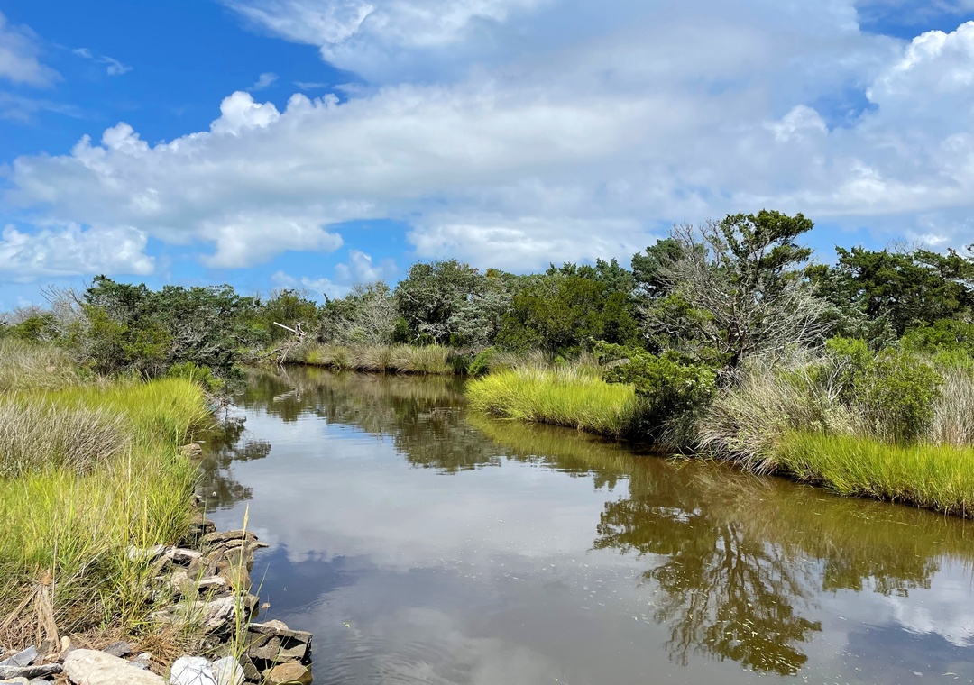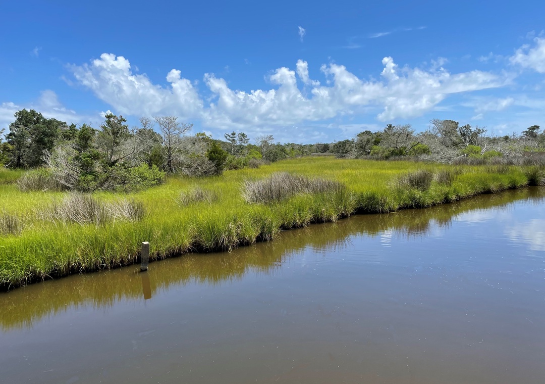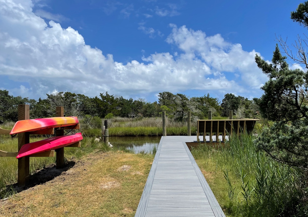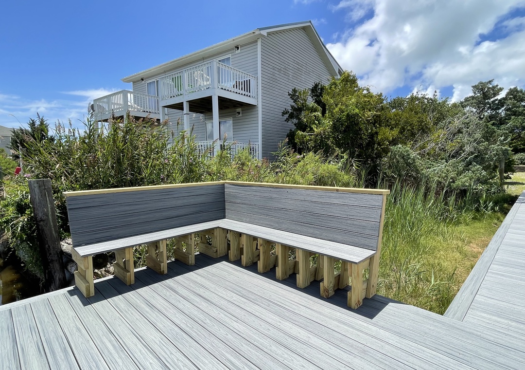 Enjoy this waterfront home located on a small canal leading to the Pamlico Sound. Once Upon A Tide offers a wonderful getaway for kayakers and nature lovers. Enjoy panoramic views of the shallow water canal, neighboring salt marsh, and maritime forest from the dock with bench seating. Relax or dine on either the first-floor screened porch or second-floor deck, both offering wonderful views.