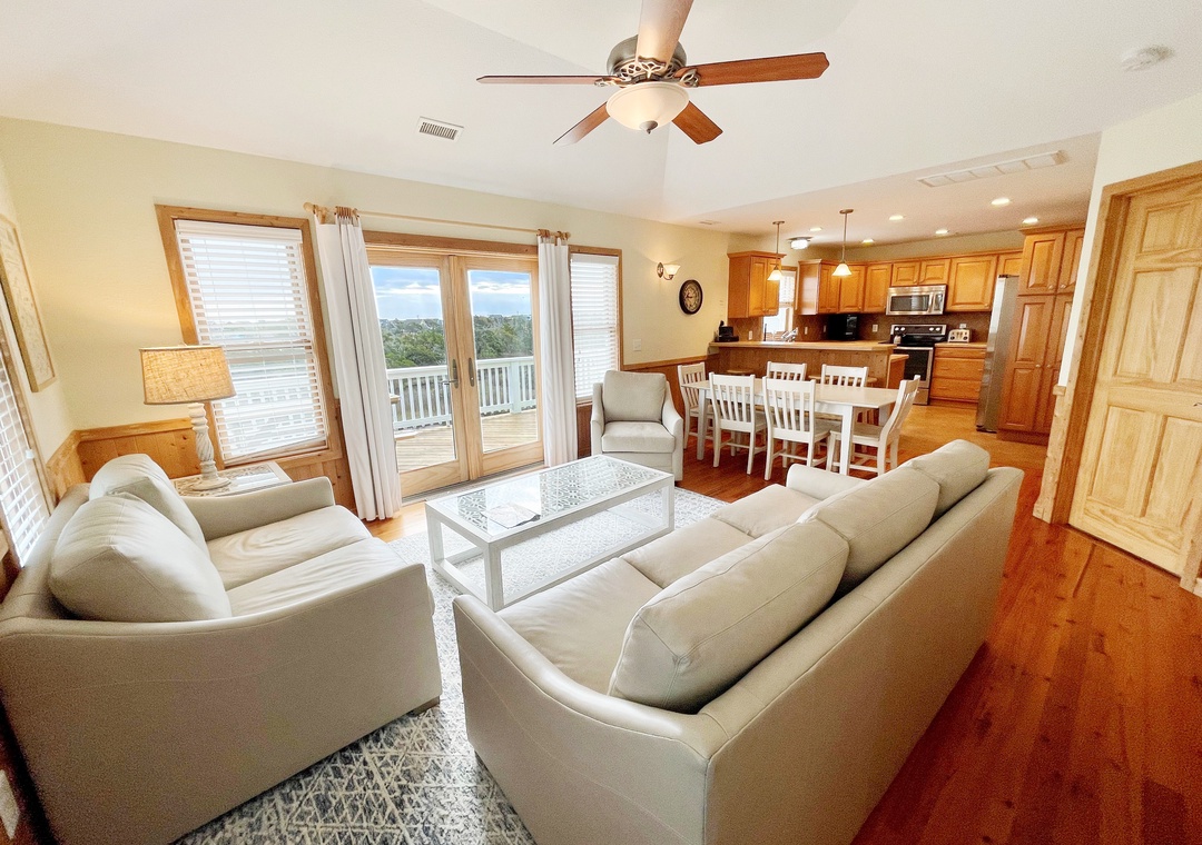 The best water views of any coastal house we've ever rented! Amazing views of Pamlico Sound from the top deck. There are two flights of steps to climb from the parking area to the kitchen and main living area. Not a problem for us (ages 65-75). We especially enjoyed the kayaks and media room. This is an attractive (and affordable) option for two couples. Great place!- Reviewed On: 11/16/2022