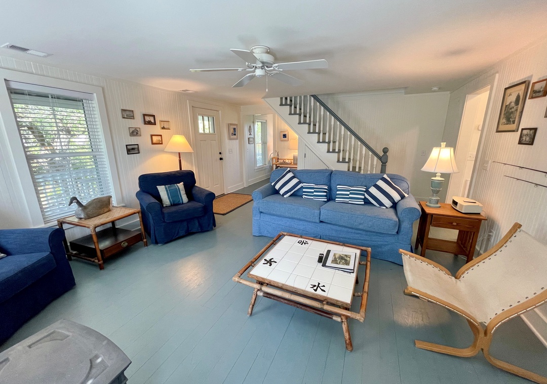 Beverly’s House on British Cemetery offers a pleasant walk or bike ride to Silver Lake Harbor, the Community Square, shops, galleries, several restaurants and popular water sports. Protected by native cedars, bay laurel, live oak, and myrtle, the front porch is a private shaded spot all day long. Relax in the rocking chairs or porch swings.